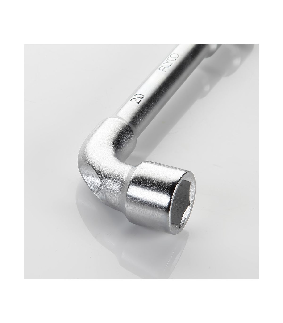 Clé coudée à deux trous à extrémité ouverte, fabriquée en acier au chrome-vanadium, forgée d'une seule pièce, durcie par traitement thermique, et avec un traitement de surface par chromage pour éviter la rouille. Le corps est de forme cylindrique, renforcé au niveau du coude pour augmenter la capacité de serrage. Les mâchoires coudées sont dotées d'un trou permettant de serrer des écrous à filetage traversant. Les mâchoires sont des douilles hexagonales (à 6 côtés), pour le serrage des écrous hexagonaux. Les procédés de fabrication confèrent à la clé une capacité de serrage supérieure à la norme DIN 691, une élasticité qui empêche la casse pendant l'utilisation, pour une sécurité optimale, et une longue durée de vie grâce au traitement thermique et au chromage de la surface. Apparence : têtes polies et chromage satiné mat. Mâchoires chanfreinées pour un emboîtage facile avec l’écrou. Outil optimal pour le serrage dans l'industrie lourde, la mécanique, la maintenance, la plomberie, les installations, etc.