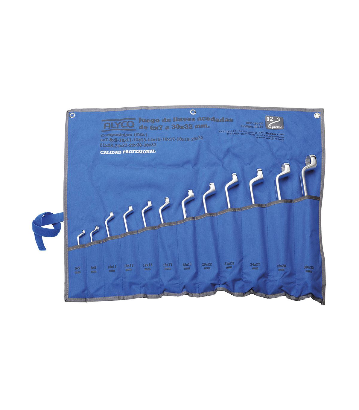 Set de 12 clés à double mâchoire étoile dans une pochette en nylon renforcé, avec 2 trous pour la suspension murale, des trous de clés pour le rangement des clés, des tailles différentes pour chaque taille, ce qui permet de trouver rapidement les outils. Housse enroulable avec boucle de fermeture, pour un stockage et un transport faciles et confortables. Clé à deux mâchoires étoile avec un angle de 75º. Les mors en étoile ont des bords arrondis. Fabriquée en acier chrome vanadium, forgée en une seule pièce, durcie par traitement thermique et traitée au chrome sur la surface pour éviter l'oxydation. Les procédés de fabrication confèrent à la clé une capacité de serrage supérieure à la norme DIN 838, une élasticité qui empêche la casse pendant l'utilisation, pour une sécurité optimale, et une longue durée de vie grâce au traitement thermique et au chromage de la surface. Apparence : têtes polies et satiné mat. Étoiles à bords arrondis pour un emboîtement facile de l'écrou. L’angle de 75° permet d’accéder aux endroits difficiles. Spécialement conçue pour les écrous très profonds ou encastrés. Dimensions en pouces : 1/4"x5/16", 5/16"x3/8", 3/8"x7/16", 7/16"x1/2", 1/2"x9/16", 9/16"x5/8", 5/8"x11/16", 3/4"x7/8", 13/16"x7/8", 15/16"x1", 1-1/16"x1-1/4", 1-1/8"x1-1/4". Outil de serrage idéal pour les travaux industriels, mécaniques, de maintenance, de plomberie, d’assemblage, etc.