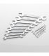 Clé fabriquée en acier au chrome-vanadium, ce qui lui confère une longue durée de vie, une résistance à la déformation et une grande capacité de charge.Forgée d'une seule pièce et durcie par traitement thermique pour une durée de vie et une résistance optimales.Chromage externe pour éviter la rouille, la déformation et la détérioration de l'écrou.Profil mince incliné à 30° pour un accès facile aux endroits difficiles.Set de tailles de 6 à 32 mm. Grande polyvalence d'utilisation avec une grande variété d’écrous.