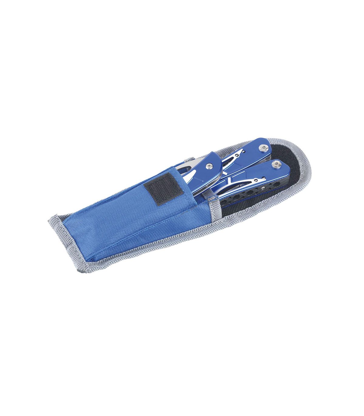 Kit de pinces multi-fonctions avec neufs outils articulés et un couteau en acier.Les pinces et la lame du couteau sont en inox.Les pinces sont intégrées dans les manches.Les manches sont en aluminium anodisé, un matériau aux caractéristiques anti-corrosion et anti-usure.L’outil est fourni dans une housse en nylon, un matériau robuste qui ne moisit pas.