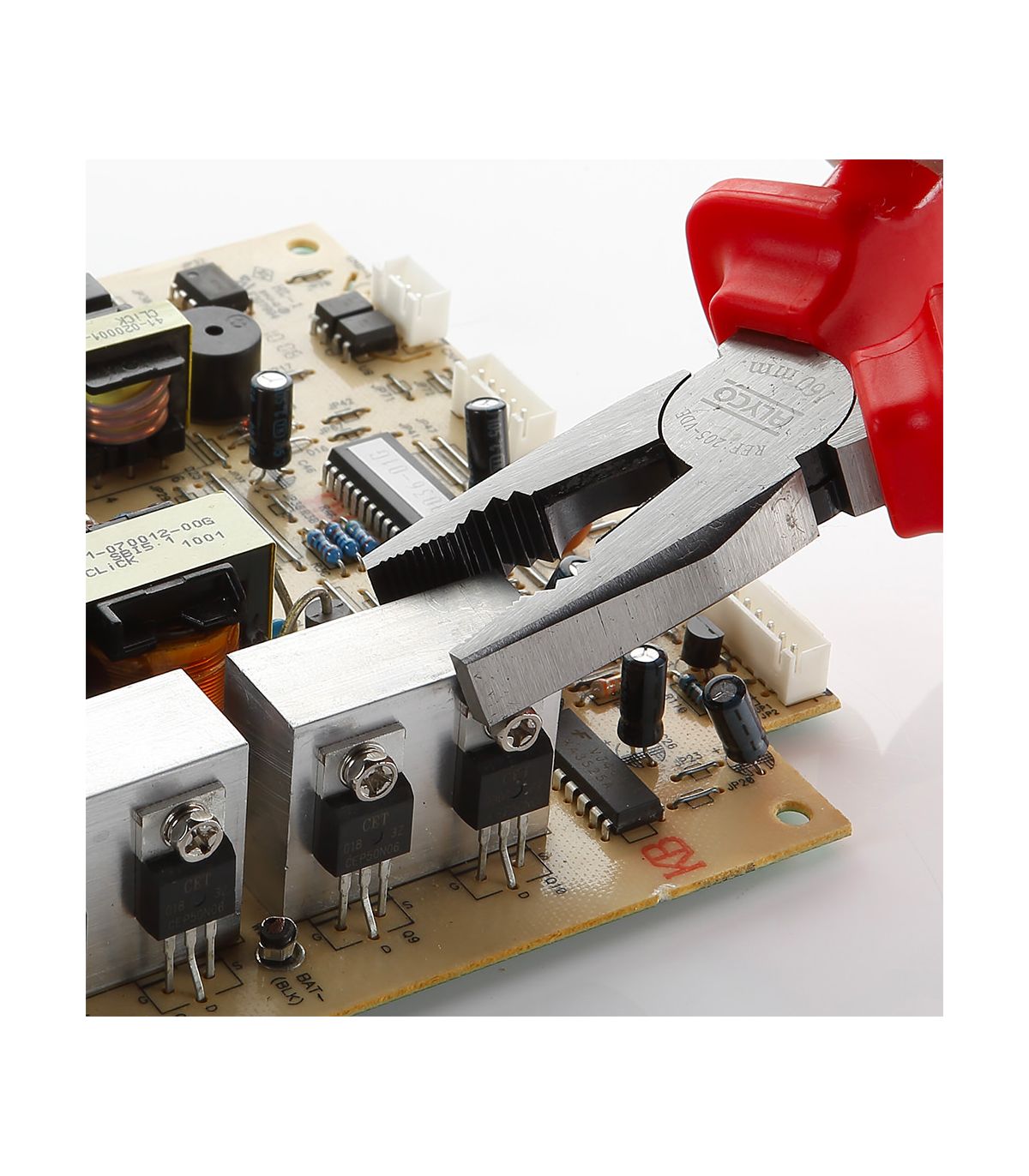 Durée maximale et résistance à l'usure grâce à sa fabrication en acier chrome vanadium. Fonctions de serrage, de préhension et de coupe en un seul outil.Tranchants trempés pour une capacité de coupe plus élevée et une plus longue durée de vie.Finition polie et laquée résistant à la rouille et à la corrosion. Évite l'oxydation des vis et évite de perdre le tranchant, ce qui arrondirait les vis.Manche ergonomique isolé composite pour une prise en main confortable et pour réduire l'effort nécessaire à leur utilisation. Permet d’effectuer des opérations dans des environnements électriques dangereux sans provoquer de fatigue des mains et des doigts.Outil garanti pour une utilisation dans des environnements avec de l'électricité grâce aux poignées isolantes spéciales.