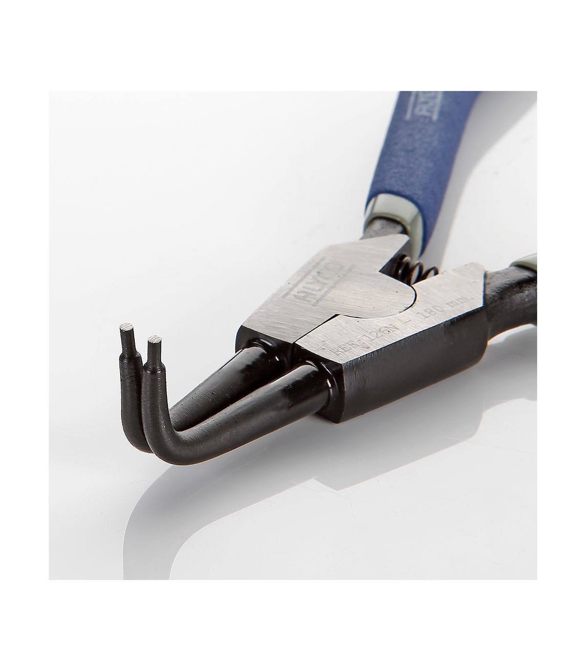 Pince à circlips avec poignées ergonomiques et ressort de retenue. Convient aux circlips extérieurs. Pince très résistante, confortable même en cas d’utilisation répétitive et intensive. Pince à utiliser sur des rondelles de retenue. Mâchoires spéciales résistantes à la déformation, renforcées pour éviter tout risque de casse. Embouts pour circlips extérieurs, bouts courbés. Ces pinces ont une grande résistance à l'usure car elles sont fabriquées en acier chrome vanadium. La tête a subi un traitement thermique par induction ; la dureté est donc plus élevée aux extrémités. Le chromage de surface empêche la rouille des outils, ce qui augmente la durée de vie des pinces. Grâce aux matériaux utilisés, à sa fabrication et à ses finitions, cette pince dépasse les attentes de la norme DIN5254. Le manche composite améliore la prise en main et le confort d'utilisation.