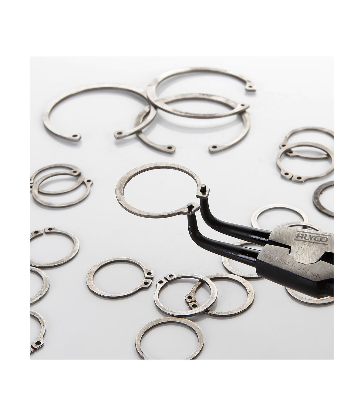 Pince à circlips avec poignées ergonomiques et ressort de retenue. Convient aux circlips extérieurs. Pince très résistante, confortable même en cas d’utilisation répétitive et intensive. Pince à utiliser sur des rondelles de retenue. Mâchoires spéciales résistantes à la déformation, renforcées pour éviter tout risque de casse. Embouts pour circlips extérieurs, bouts courbés. Ces pinces ont une grande résistance à l'usure car elles sont fabriquées en acier chrome vanadium. La tête a subi un traitement thermique par induction ; la dureté est donc plus élevée aux extrémités. Le chromage de surface empêche la rouille des outils, ce qui augmente la durée de vie des pinces. Grâce aux matériaux utilisés, à sa fabrication et à ses finitions, cette pince dépasse les attentes de la norme DIN5254. Le manche composite améliore la prise en main et le confort d'utilisation.
