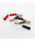 Pinces de batterie pour batteries de démarrage de véhicules, capables de supporter jusqu'à 125 ampères.Conviennent aux câbles de 25-35 mm² avec un diamètre maximal de 11 mm.Fabriquées en acier zingué, un matériau qui offre une haute conductivité.Set de deux couleurs : un rouge et un noir.Poignées ergonomiques, revêtues de PVC, pour une utilisation sûre et confortable.