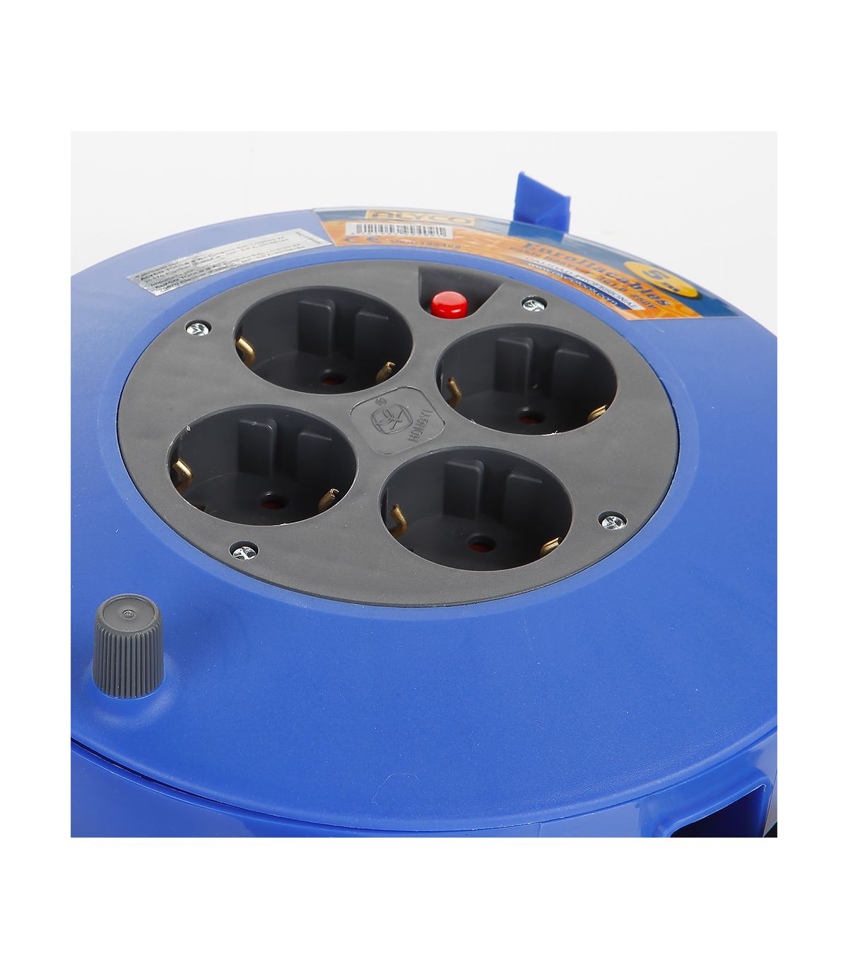 Enrouleur de tambour en plastique avec cadre et poignée en métal. Câble en cuivre sous gaine plastique non mélangé. Longueur 5, 10 ou 15 mètres. Câble composé de 3 fils de cuivre de 1 mm2 d'épaisseur. Le câble est de type H05VVV-F de haute sécurité, pouvant supporter une puissance maximale de 2300W lorsque le câble est étendu (10A), et 900W (3,9A) avec le câble rétracté. L'enrouleur de câble est conforme à la norme IP20 pour la protection contre la poussière et l'eau. De plus, il répond aux normes de sécurité du certificat CE pour la sécurité électrique et GS (Geprüft Sicherheit) pour la sécurité. Le câble est équipé d'une fiche à 2 fils avec des fiches de type européen et de 4 prises de type Schuko. Il comprend un système de mise à la terre de sécurité et un thermostat en cas de surcharge et de surchauffe. Il est doté d'une manivelle pour un enroulement rapide du câble, ce qui le rend très pratique. Qualité industrielle conforme à toutes les normes de sécurité. Convient pour l'industrie, l'utilisation professionnelle en extérieur, la construction, l'agriculture, la maintenance électrique, etc.