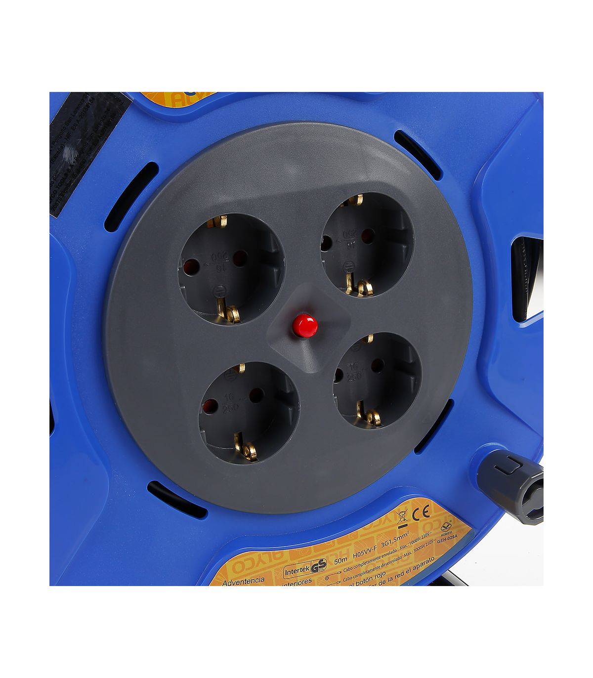 Enrouleur de câble électrique avec câble 3 x 1 mm2, IP20 (protection 2 contre la poussière et 0 contre l'eau), marquage CE et GS. Longueur du câble 5, 10 ou 15 mètres.Câble en cuivre conforme à toutes les certifications d'utilisation et de sécurité, donnant une confiance totale à l'utilisateur.Protections de sécurité de tous types pour éviter tout type d'accident électrique (voir tolérances d'utilisation)Il coupe le courant en cas de dépassement de la puissance admissible, offrant ainsi plus de sécuritéRembobinage et stockage rapides sans contact avec le sol.