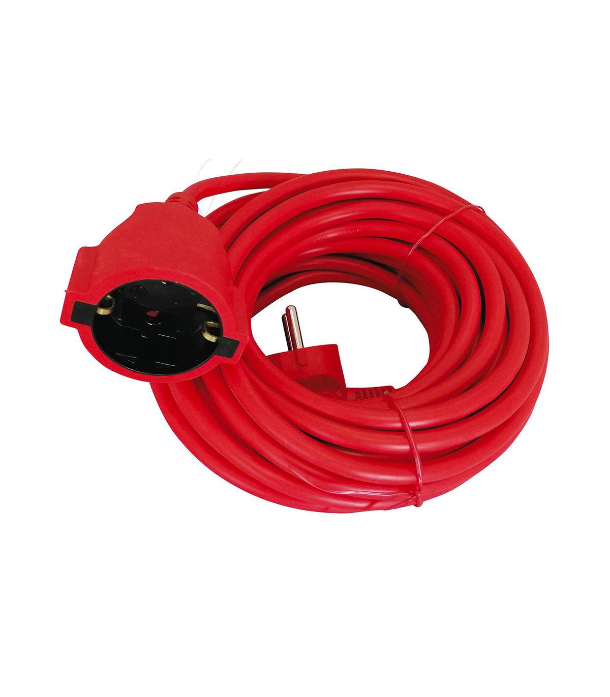 Câble de rallonge de 15 ou 25 m de type H05VVV-F 3x1,5 mm² avec une prise 16 A et une tension d'entrée de 230 V. Avec système de protection contre les contacts avec les enfants pour éviter les accidents électriques (protection des enfants). Protégé par du PVC rouge. Conforme aux normes CE et GS en matière de sécurité électrique. Il est recommandé pour l'alimentation des appareils électroménagers dans les maisons et les bureaux, avec un design en plastique rouge. Grâce à son indice de protection IP20, convient pour une utilisation en intérieur. Dispose d'une prise de 16 A avec mise à la terre.