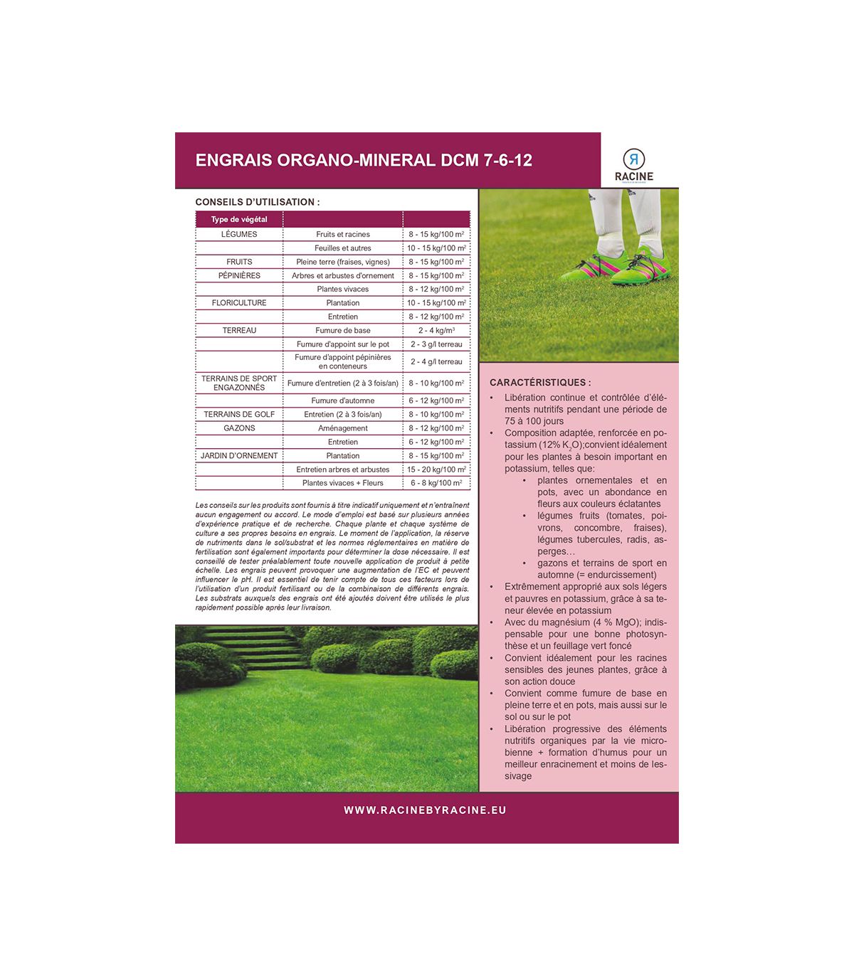 - Libération progressive des éléments nutritifs sur une durée de 75 à 100 jours pour une croissance régulière.
