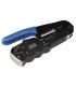 Sertisseuse pour sertir différents types de connecteurs réseau sur les câbles de données. Convient pour travailler avec les connecteurs RJ11 - 6P4C ; RJ12 - 6P6C et RJ45 - 8P8C. Permet de retirer l'isolant de l'extrémité du câble et d'insérer efficacement le connecteur. Il s’agit d’un outil multifonctionnel, capable de sertir des connecteurs et de couper et dénuder différents types de câbles. Cet outil convient pour travailler avec des câbles ronds et plats. Il possède une poignée ergonomique recouverte de PVC qui rend la manipulation de l'outil plus confortable et une base en caoutchouc antidérapante qui s'adapte à la forme de la main. La qualité des matériaux qui le composent et sa conception soignée en font un outil parfait pour les travaux professionnels.