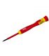 Tournevis de précision isolé avec embout torx, adapté pour travailler en toute sécurité sur des équipements dont la tension peut atteindre 1 000 V en courant alternatif ou 15 000 V en courant continu. Idéal pour les travaux dans le domaine de l'électronique ou des circuits électriques. La tige de 50 mm est fabriquée en acier au chrome vanadium molybdène et possède un revêtement en phosphate de manganèse. De plus, il est recouvert de phosphate noir, ce qui le protège de la corrosion. Il est doté d’une poignée composite avec un grip ergonomique, qui facilite la manipulation et réduit la fatigue des mains. Ce tournevis est certifié VDE et EN 60900.