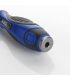 Tournevis à usage industriel, très adapté aux opérations répétitives. Haut coefficient d'absorption de l'effort grâce au manche ergonomique composite. Possibilité d’appliquer une force supplémentaire sur l’extrémité du manche (douille hexagonale), sur le conducteur de la tige hexagonale et sur la tige hexagonale elle-même. Fabriqué en acier spécial S2 (acier à ressorts ou à outils) pour une dureté et une durée d’utilisation exceptionnelles. Le traitement thermique différencié équilibre la dureté et l'élasticité requises dans chaque zone. La pointe est dotée d’une dureté supérieure, ce qui permet d’éviter les fissures ou les cassures. La tige est chromée à la surface pour prolonger la durée de vie de l'outil et éviter la corrosion. Le manche composite permet un grand confort d’utilisation et une meilleure transmission de l'effort, grâce à ses deux composants qui permettent une préhension et un effort optimisés. La tige traversante étant d'une seule pièce, la butée supérieure peut transmettre l'effort, aidé par l'hexagone à son extrémité. La tige comporte également un hexagone conducteur au début de la tige qui peut être utilisé avec une clé ou une pince pour augmenter le couple. La tige se termine par la pointe avec traitement thermique par induction spécifique pour augmenter la dureté et éviter la casse. Elle est également aimantée pour faciliter la mise en place ou le retrait de la vis. Le tournevis est léger, pratique et de grande capacité. Sa durée de vie est très longue et la capacité de transmission de l'effort est très élevée. Cela permet une utilisation sans grande fatigue et une transmission élevée de l'effort, ce qui rend possible son utilisation dans les travaux industriels répétitifs. Elle est dotée de plusieurs options pour augmenter la capacité d'effort.