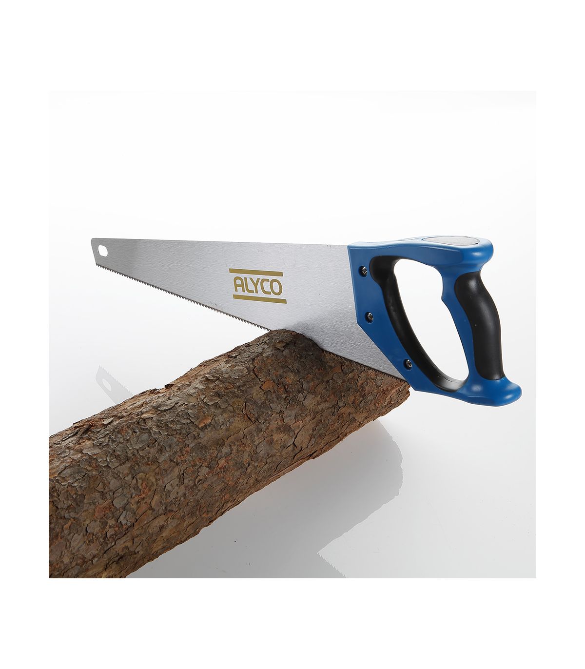 Lame de scie en acier à haute teneur en carbone avec denture standard, deux surfaces de coupe sur chaque dent, pour et contre le sciage. Lame doublement trempée. Manche composite renforcé et ergonomique en plastique dur et caoutchouc antidérapant.