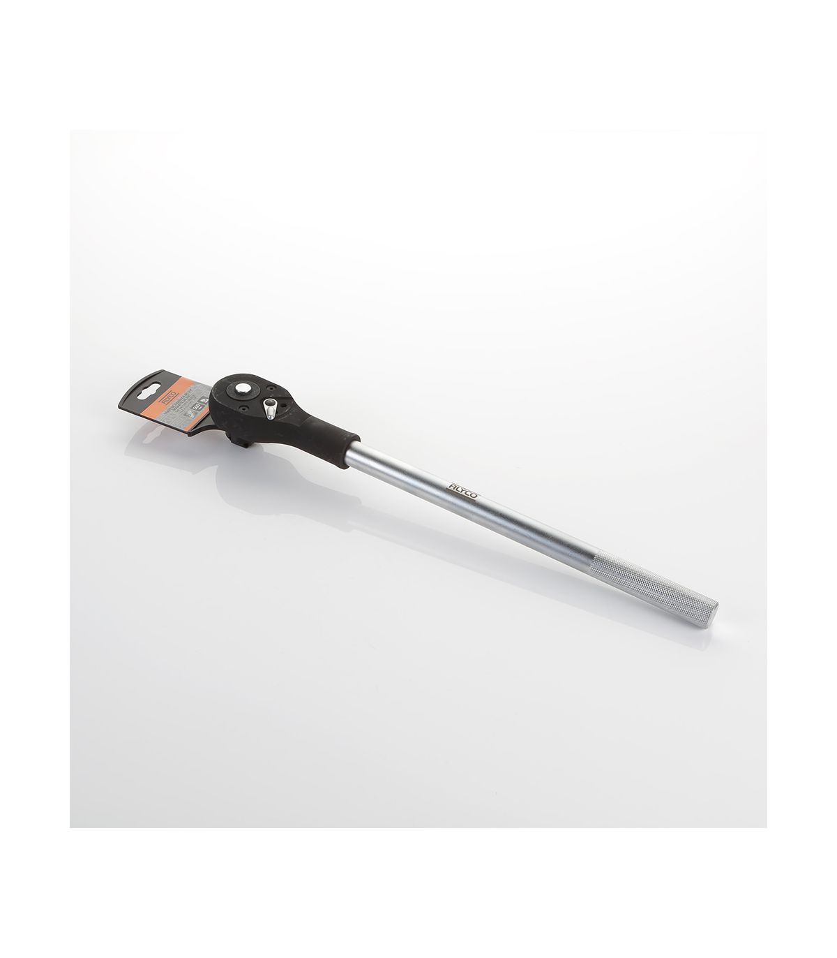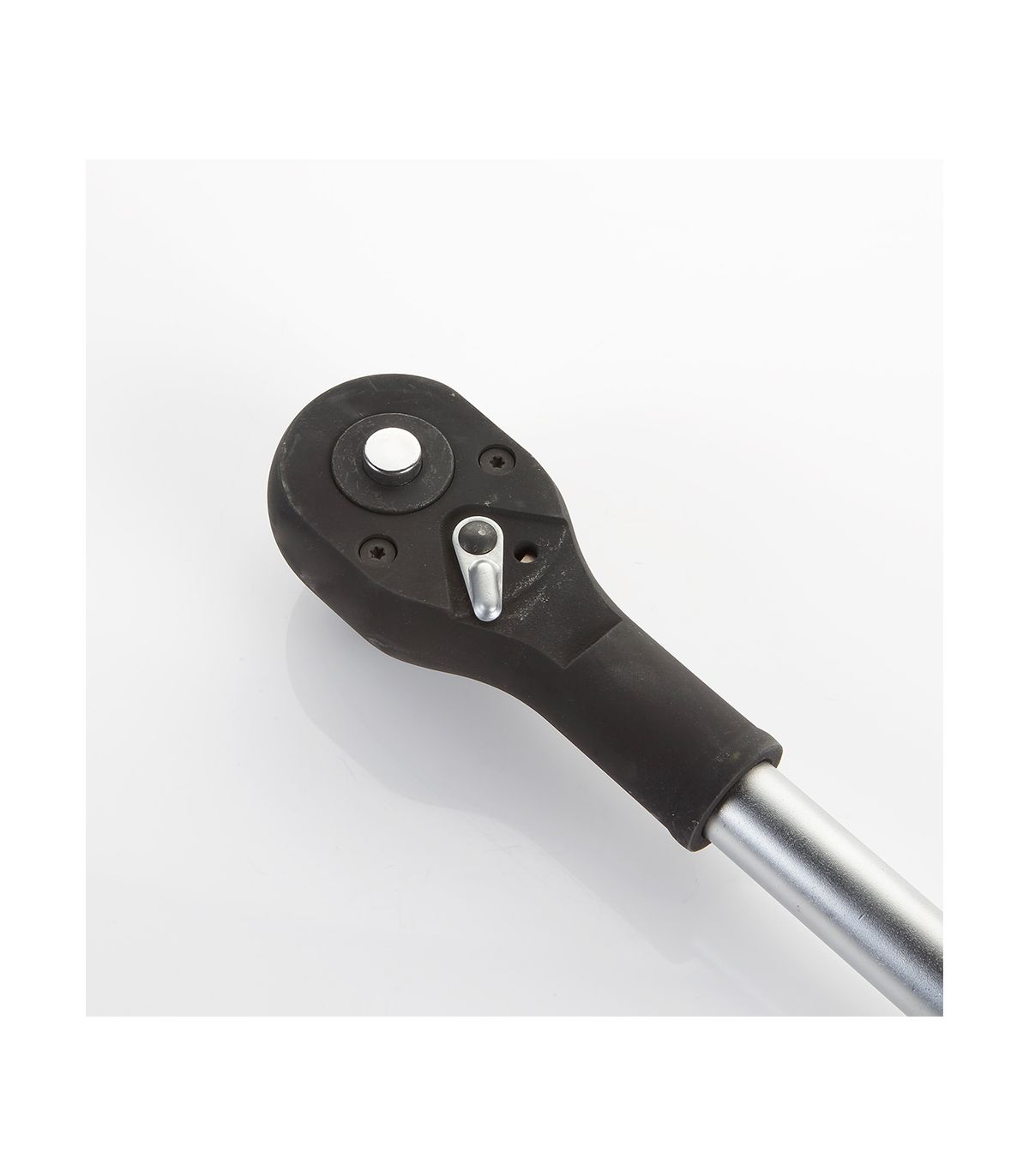 Clé à cliquet à entraînement carré de 3/4" en acier au chrome-vanadium, traitée thermiquement et chromée en surface, avec un mécanisme de rotation de 24 dents, avec un pas tous les 15 degrés. Le cliquet est doté d'un inverseur et d'un éjecteur de douille, ce qui lui confère une grande fiabilité et une capacité de serrage élevée. La tête du cliquet est amovible. Élément de serrage multifonctionnel, avec possibilité de serrage à droite et à gauche. Entraînement carré précis, qui s'adapte parfaitement à la clé à douille, avec une bille de retenue pour empêcher la douille de se séparer ou de tomber. Manche ergonomique de 52 cm en caoutchouc antidérapant pour une prise en main facile, un confort et une transmission optimale de la force aux vis. Très utile pour les opérations de serrage dans la mécanique lourde, la maintenance, les monteurs, les tracteurs, les camions, etc.