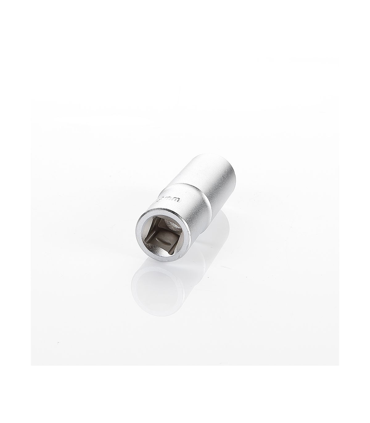Clé à douille pour serrage avec cliquet entraînement carré 1/2". Parfaites pour les écrous hexagonaux. Profil hexagonal régulier. Pour un serrage très précis avec une transmission d'effort élevée, sans user le profil. Douille en acier au chrome-vanadium, ce qui lui confère une plus grande résistance, une meilleure capacité de serrage et une plus longue durée de vie. La douille subit un traitement thermique lors de sa fabrication, ce qui lui confère une plus grande capacité de serrage, évite les fissures et prolonge la durée de vie de la douille. À la fin du processus de fabrication, elle est traitée en surface par chromage, ce qui prévient la corrosion et prolonge la durée de vie de la douille. Les douilles sont conformes à la norme DIN3124/ ISO2725. Elles sont marquées de notre logo et de la taille de la mâchoire. Ces douilles sont utiles pour le serrage à cliquet, avec poignée articulée et poignée en T. Elles peuvent être appliquées à de nombreux accessoires tels que les rallonges, les adaptateurs, etc. Parfaites pour le serrage d'écrous hexagonaux dans l'industrie, la construction, la maintenance industrielle et pour une utilisation domestique. Leur utilisation n'est pas recommandée avec des outils à percussion.