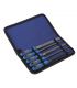 Lot de 5 limes de 200 mm, adaptées au travail de matériaux tels que le métal, le plastique, la céramique ou le bois. Comprend 1 lime plate, 1 lime mi-ronde, 1 lime ronde, 1 lime carrée et 1 lime triangulaire. Elles sont livrées dans un étui en nylon.Elles sont dotées d'une poignée composite ergonomique qui augmente le confort d'utilisation.La lame a une forte teneur en carbone qui garantit une dureté de surface élevée.Elles sont dotées d'une articulation solide entre la lame et le manche pour éviter le détachement et la casse.La qualité des matériaux et leur conception en font des outils parfaits pour le travail professionnel.