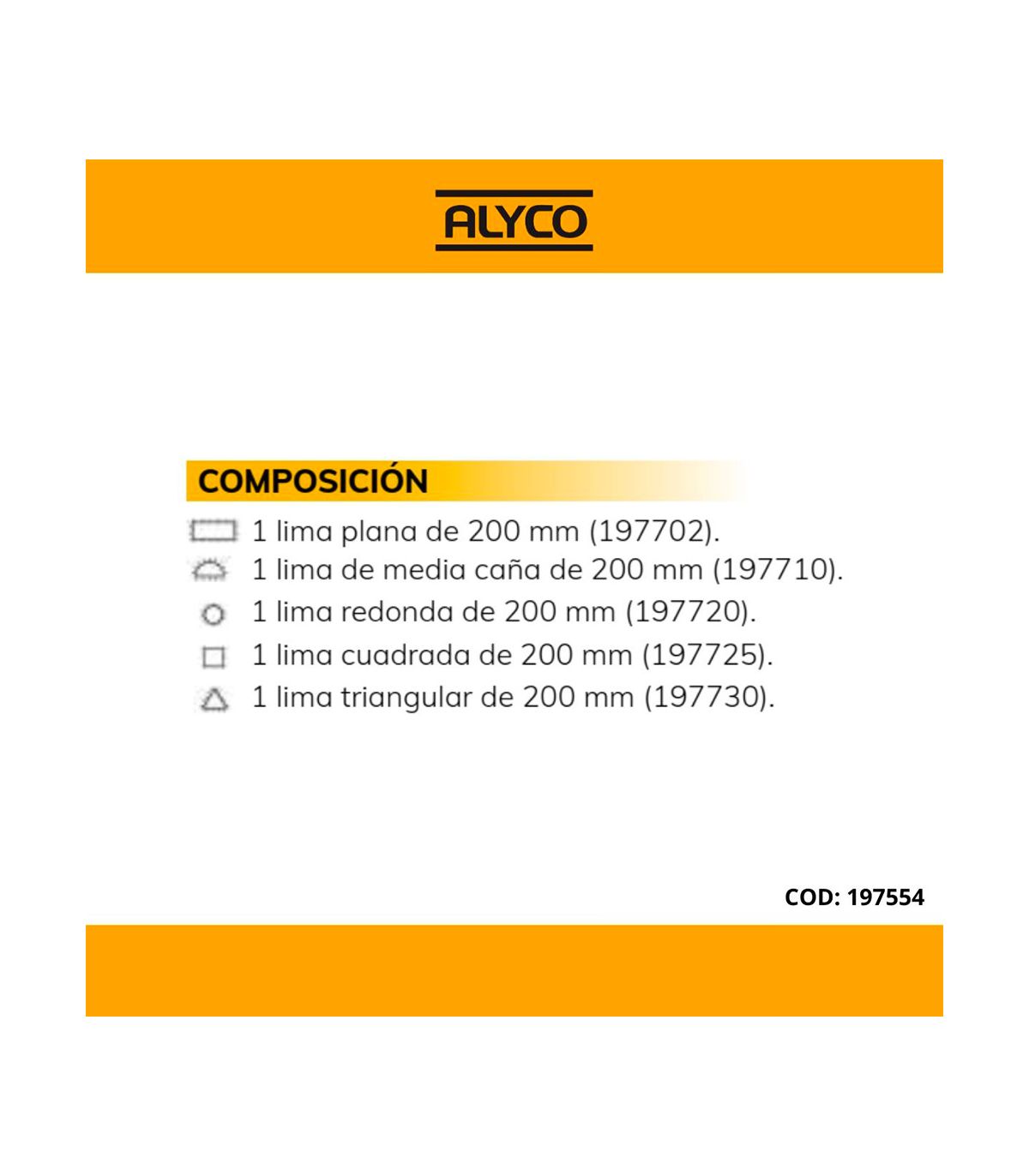 Set de 5 limes d/large 200 mm b/nylon ALYCO 197554