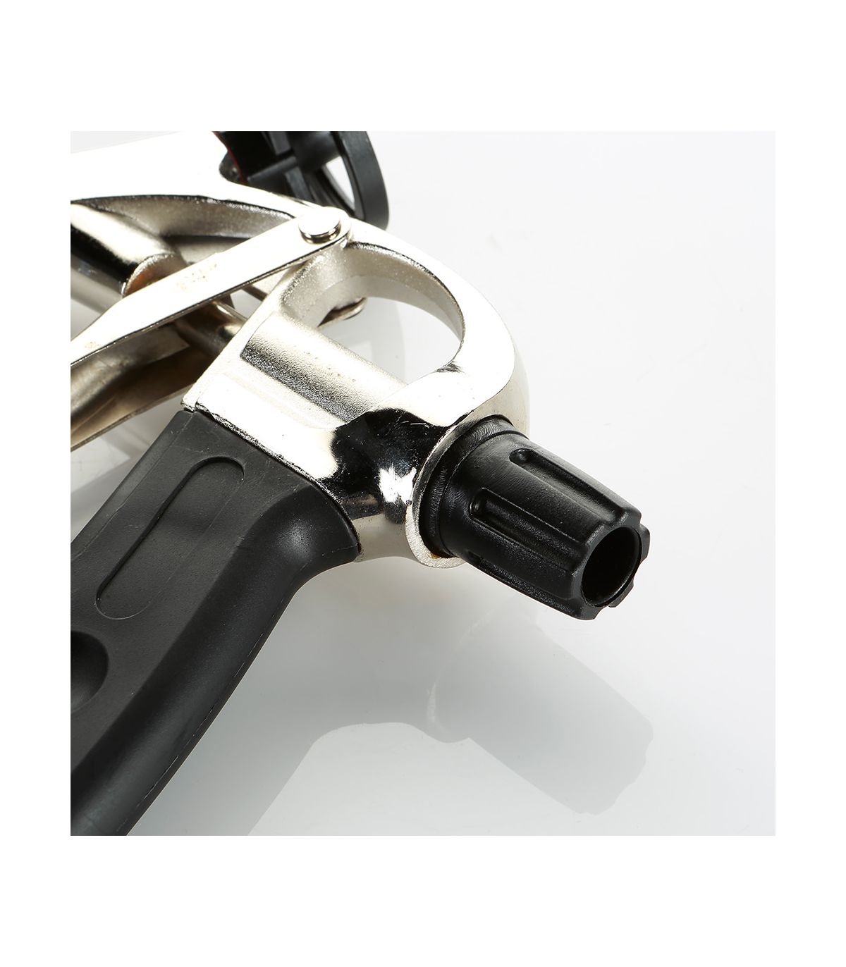 Applicateur à injection manuelle de mousse de polyuréthane (PU) au moyen d'une cartouche de mousse PU d'étanchéité, par pression de la mousse à l'intérieur de la cartouche. Système de pression de la cartouche et sortie régulée par la gâchette et le filetage arrière qui permet de réguler le débit de sortie. Il est doté d'un revêtement interne en téflon pour empêcher le maximum d'air de pénétrer, ce qui aurait pour effet de solidifier la mousse, de bloquer le tube et l'embout, rendant le pistolet inutilisable, jusqu'à ce qu'un nettoyage laborieux soit effectué. L'applicateur se compose d'un raccord étanche à la cartouche en mousse PU, d'une gâchette régulatrice du débit, d'un écrou qui permet de régler l'amplitude de sortie de la gâchette, d’un tube creux, et d’un embout qui permet à la mousse de sortir, selon la pression exercée sur la gâchette. La connexion métallique à la cartouche est universelle. La mousse est liquide sous pression, et reste donc liquide tant qu'elle est dans la cartouche, sans contact avec l’air. Elle se solidifie en sortant, au contact de l'air. L'applicateur se compose d'une poignée en plastique, de la partie métallique du connecteur, de la gâchette et du filetage régulé en zinc, du tube en zinc et de l'embout en inox. Si de l'air pénètre dans le tube, toute la charge de mousse se solidifie, ce qui rend la tâche de nettoyage très laborieuse. Pour éviter cela, il est fourni avec deux protecteurs d'embout qui recouvrent l'embout, empêchant la mousse de se solidifier. Applicateur offrant d'excellents résultats, une longue durée de vie et une grande efficacité d'utilisation. Application pour le remplissage des trous, l'étanchéité des fenêtres ou des portes, ou les zones à fermer sur les toits, idéal pour un usage professionnel comme pour les bricoleurs. Également utile dans les travaux de construction, de montage, d'isolation et de finition. Fourni avec deux protecteurs d'embout pour empêcher le sertissage du tube et de l'embout.