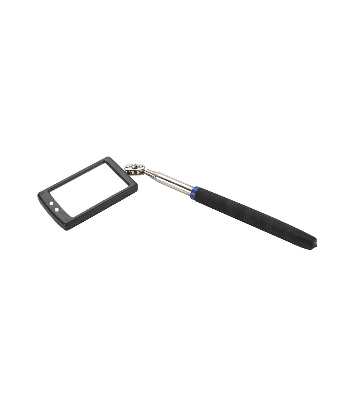 Miroir télescopique adapté à l'inspection des endroits difficiles d'accès dans les travaux mécaniques et automobiles.La taille optimale du miroir pour garantir une vue précise. Il est protégé par un cadre en plastique.Comprend deux ampoules LED alimentées par des piles CR2032.Le miroir est entièrement extensible et atteint une longueur totale de 876 mm.Sa poignée est ergonomique et antidérapante et sa tige est en inox.