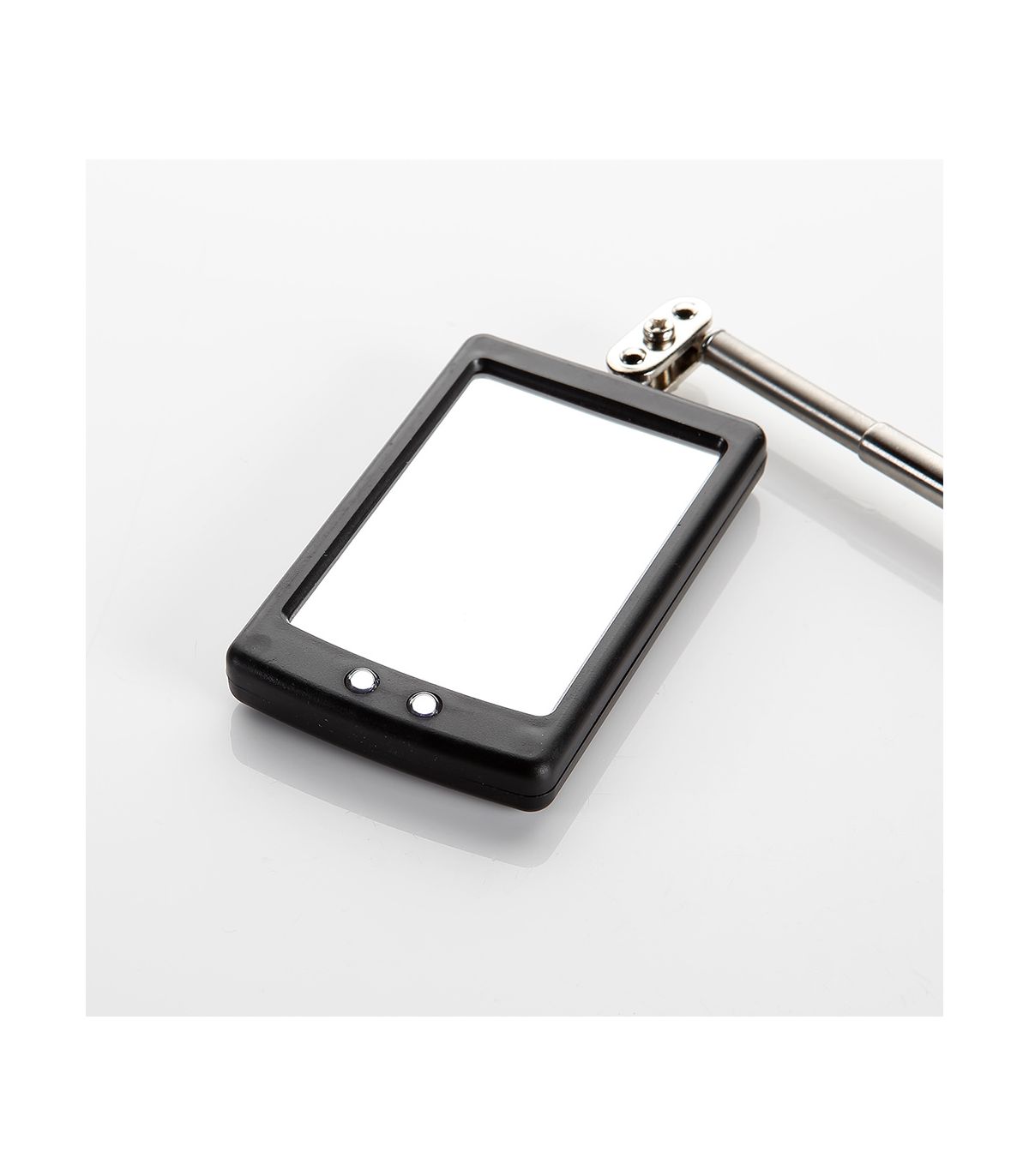 Miroir d'inspection télescopique avec lumière, parfait pour l'inspection des zones difficiles à atteindre ou peu visibles dans les travaux mécaniques, automobiles et autres. Il s'agit d'un miroir extensible, dont la longueur varie de 290 à 876 mm. Il est doté d'un joint universel pour la rotation, l'inclinaison et la fixation, ce qui lui permet de s'adapter facilement à tous les types de coins. Il permet une vision parfaite grâce aux deux ampoules LED installées à l'avant. Sa tige est en inox, un matériau de haute qualité qui augmente la durée de vie utile de l'outil et empêche la rouille. Les bords du miroir sont recouverts d'un cadre en plastique afin d'augmenter sa protection et de protéger le verre des éventuels chocs. Le manche est de forme ergonomique et doux au toucher, avec une finition antidérapante. La qualité du matériau utilisé et sa conception en font un outil très polyvalent capable de s'adapter aux tâches professionnelles et domestiques.