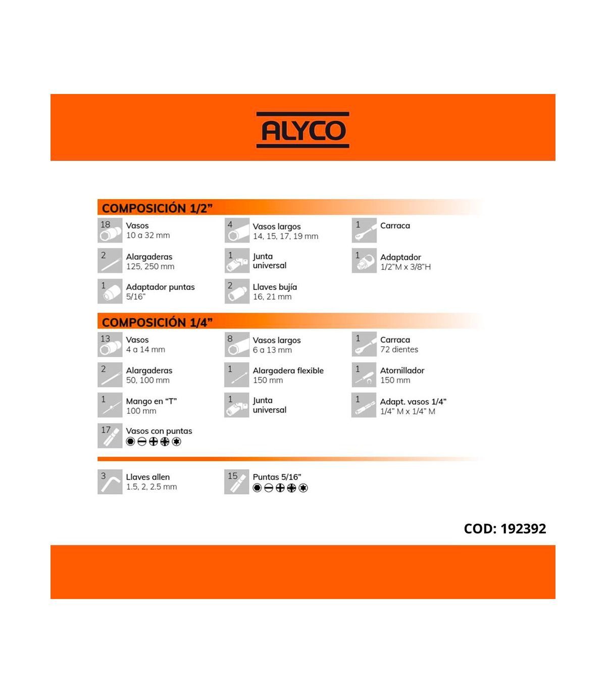 Set de 94 Pièces Clés à Douille Alyco Orange 192392