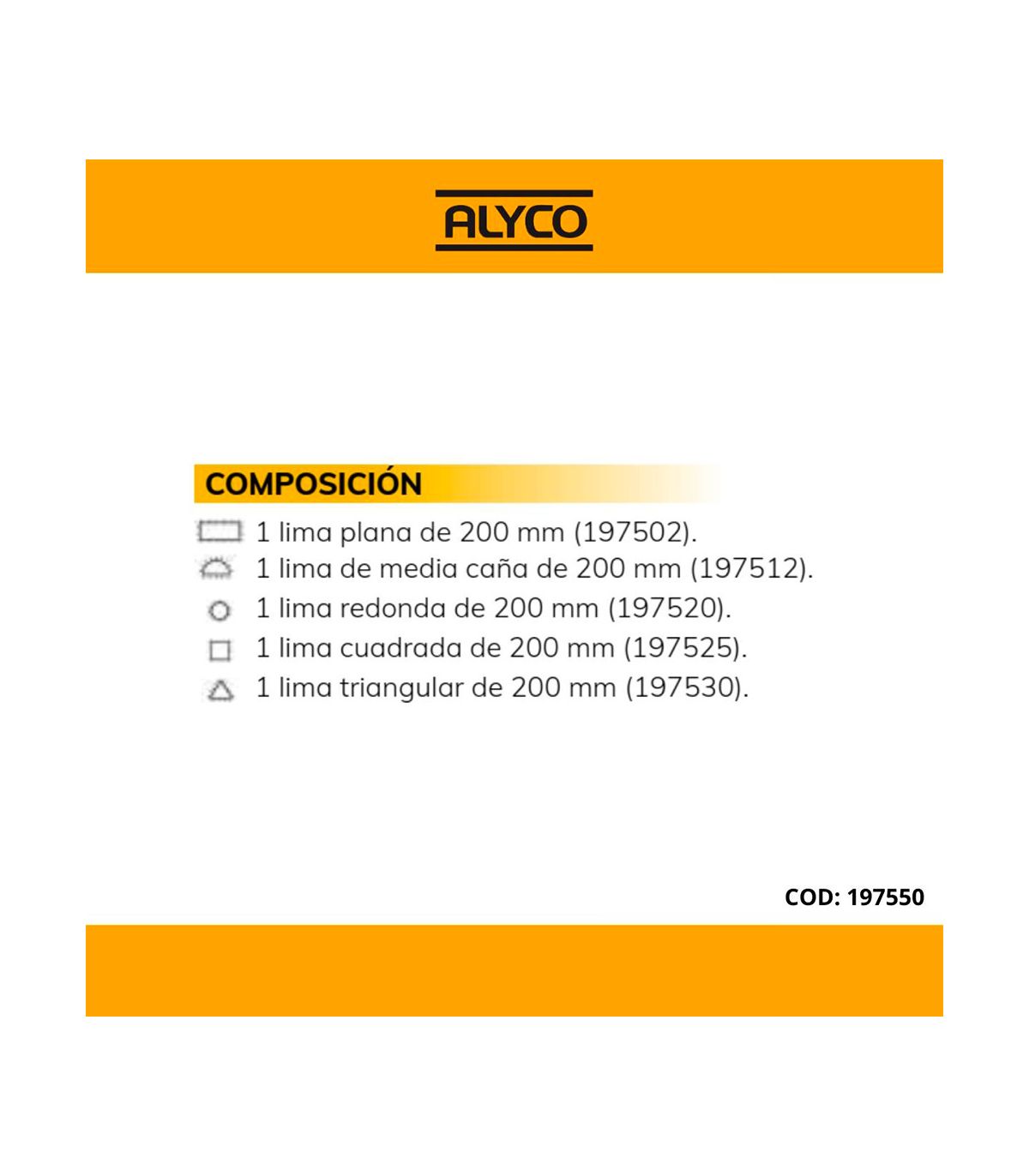 Lot De 5 Lime De 200 Mm Dans H/Nylon Alyco 197550