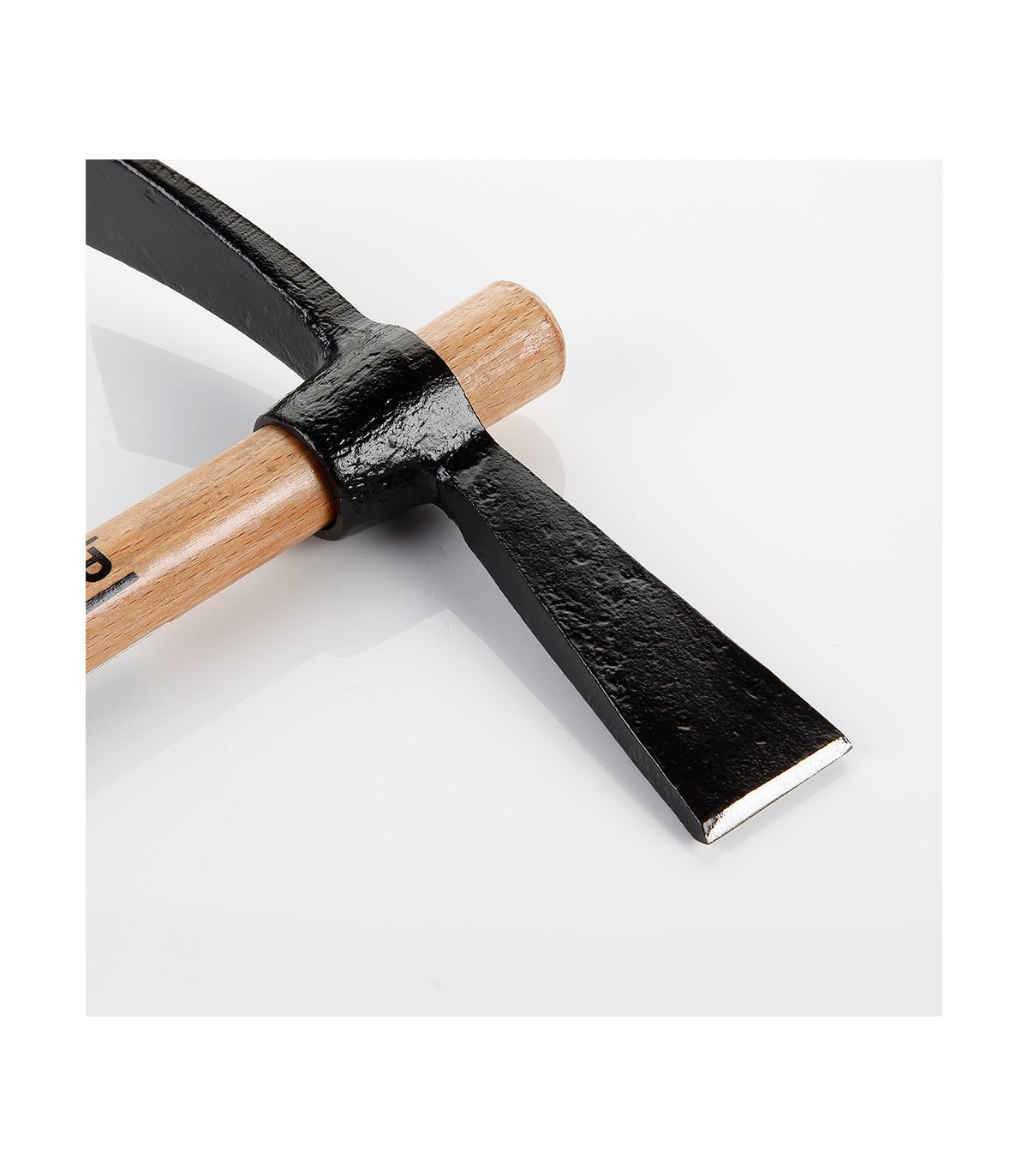 Pioche-hache avec manche ergonomique en bois de hêtre. La tête en acier au carbone forgé et la surface de travail trempée permettent d'obtenir une dureté et une résistance aux chocs élevées. Le manche est fixé au moyen d'une tige conique, ce qui rend impossible le détachement de la tête. La pioche-pelle est principalement utilisée dans la construction pour les travaux de démolition.