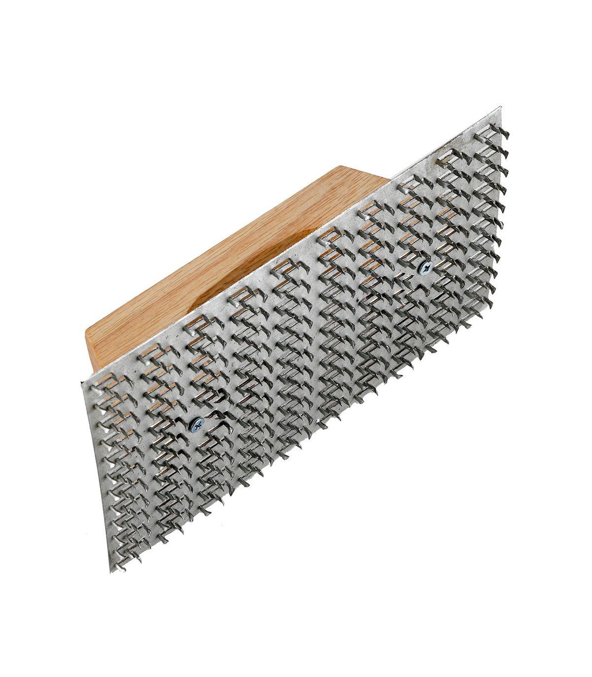 Grattoir pour mortier monocouche, idéal pour régulariser l'épaisseur du mortier et le laisser à la hauteur souhaitée dans les travaux de maçonnerie.La lame de haute qualité assure la durabilité de l'outil et le protège contre la corrosion.Base rectangulaire de taille optimale pour une application pratique du produit.Manche ergonomique en bois verni, léger et avec une prise en main confortable pour une utilisation plus aisée.Dents uniformément réparties pour une finition homogène.