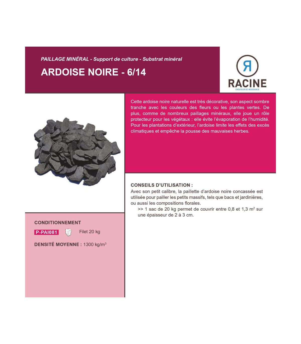 | Type de produit | Paillage minéral |