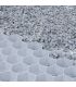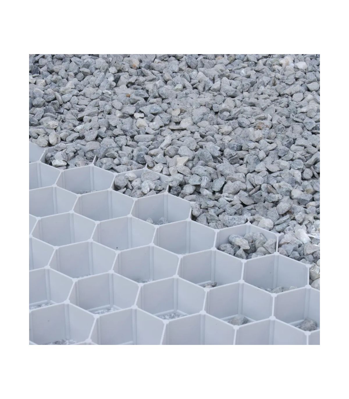 - Mettre une couche de fondation de tout-venant 0/31 (5 à 40 cm selon l’usage) et une couche de sable fin de 1 à 2,5 cm. Poser les plaques en quinconce, recouvrir les débords de géotextile, remplir de gravier sur 15 à 20 mm, puis uniformiser la surface.