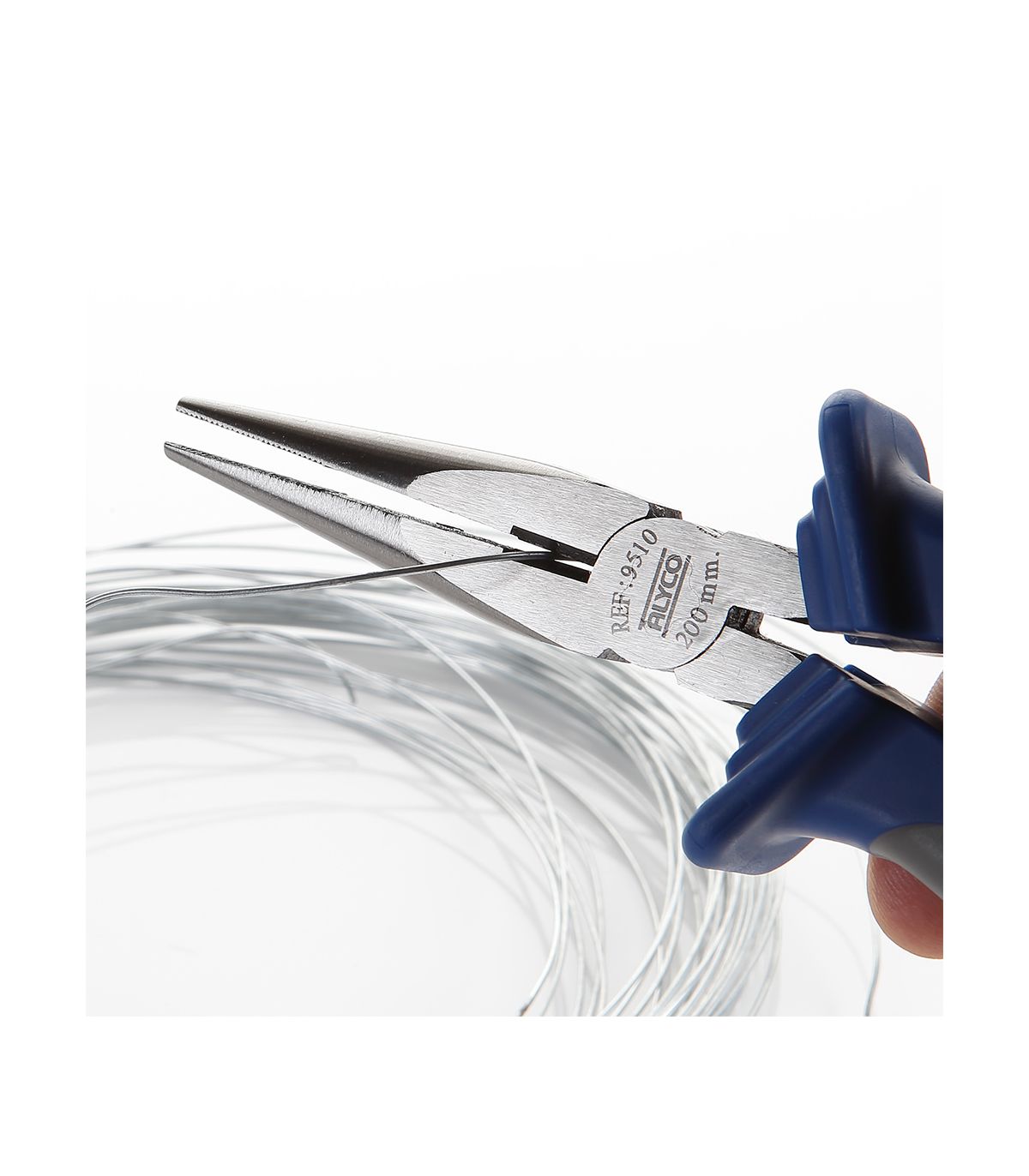 Pince à mâchoires semi-rondes dotée d’un tranchant puissant et durable. Manipulation et coupe précises pour une longue durée de vie. Confort optimal même en cas d’utilisation répétitive et intensive. Pince coupante à mâchoires permettant de travailler avec moins d'effort pour des travaux de coupe de câbles. La zone de coupe est dotée de tranchants parfaitement alignés pour la découpe de matériaux durs et semi-durs. Cette pince à mâchoires effilées est en acier au chrome vanadium, très résistante à l'usure. Le manche composite améliore la prise en main et le confort d'utilisation. En outre, son corps est traité thermiquement pour lui donner une plus grande dureté et les bords tranchants sont trempés par induction pour une meilleure capacité de coupe et prévenir l’usure. Fonctionnalités : Manipulation : Pliage, tension et préhension de matériaux durs et semi-durs. Câbles, fils et câbles de corde à piano. Coupe : Matériaux durs et semi-durs. Câbles, fils et câbles de corde à piano. Qualité certifiée Cette pince est conforme à la norme DIN 5745 (Normes techniques pour l'assurance qualité des produits industriels et scientifiques en Allemagne).