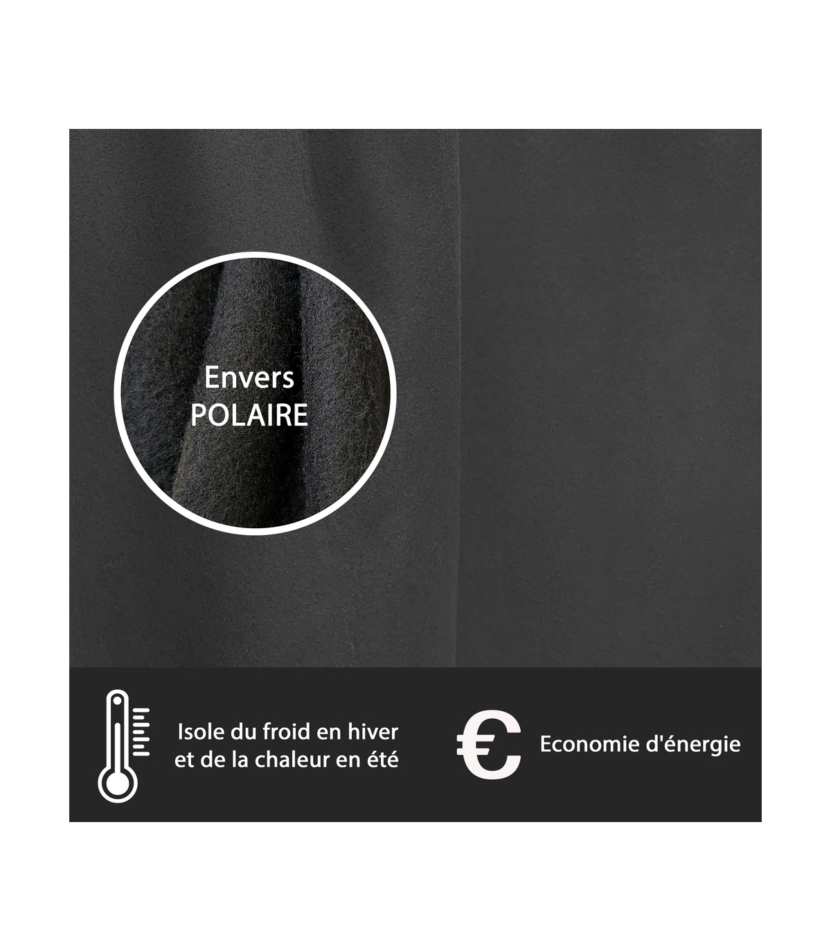 Rideau suédine thermique doublé polaire, Noir - 140x240cm prêt a poser Atout Ciel