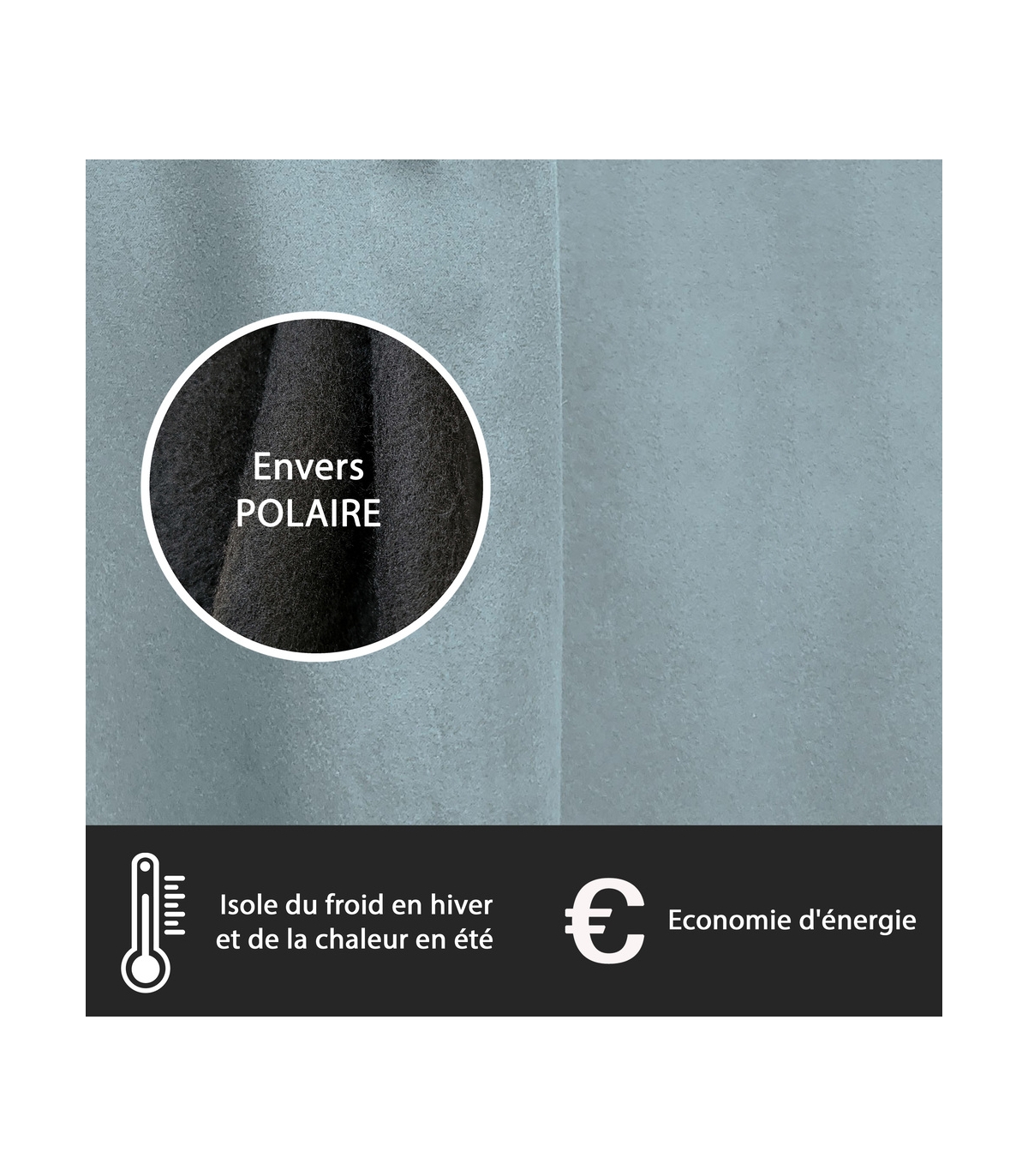 • Rideau suédine thermique bleu glacier pour une ambiance moderne avec son tissu légèrement satiné.