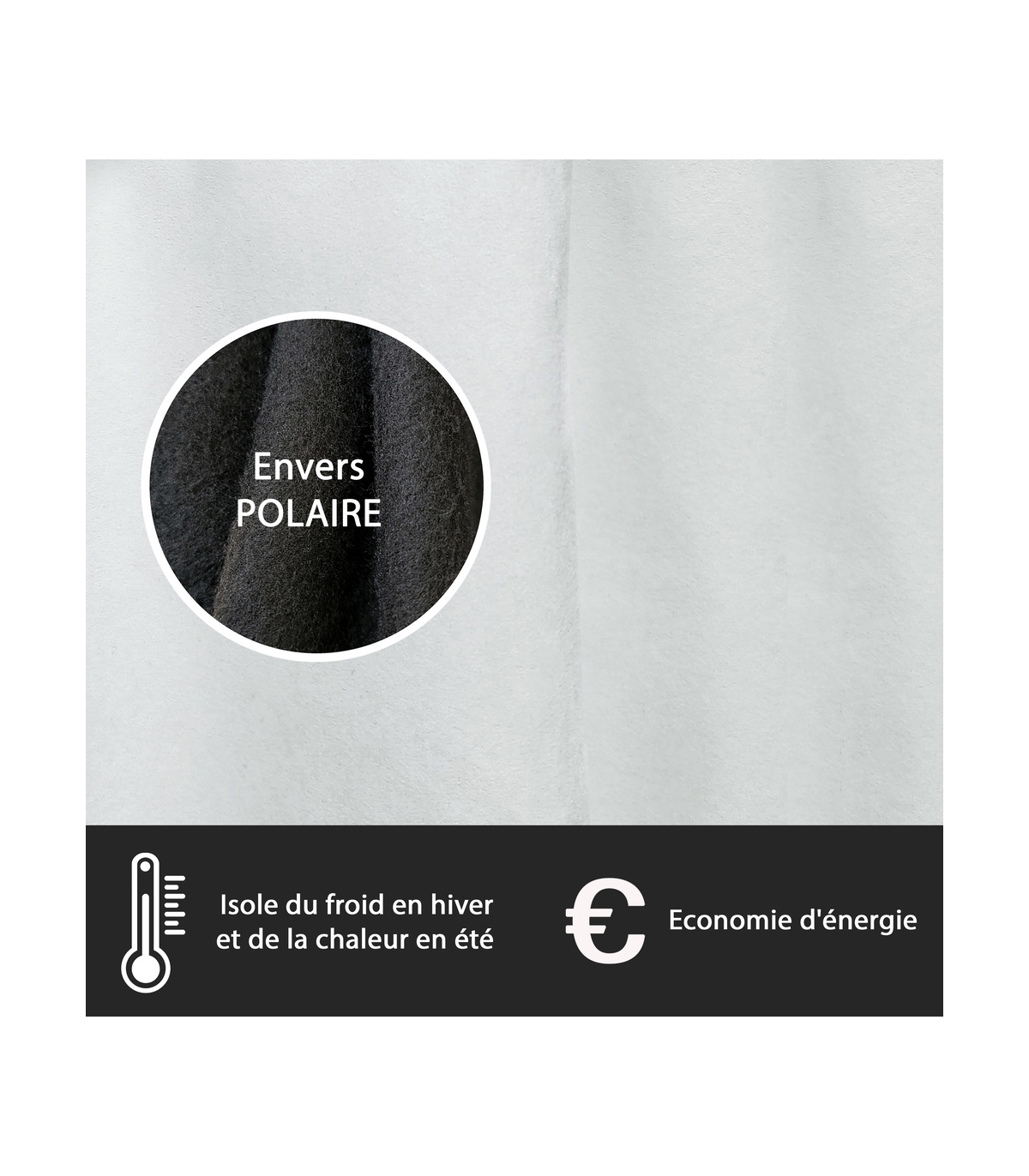 Rideau suédine thermique doublé polaire, Blanc - 140x240cm prêt a poser Atout Ciel