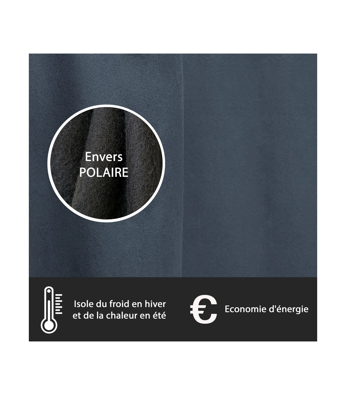 Rideau suédine Thermique doublé Polaire, Bleu pétrole, 140x180cm Prêt a poser Atout Ciel