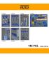 La force de la référence 129714 réside dans sa composition interne. Les tiroirs ne sont pas simplement remplis d'outils, ils sont organisés avec des modules thermoformés ou en mousse haute densité. Chaque pince, tournevis ou clé possède son propre emplacement, ce qui permet un inventaire visuel instantané et évite les pertes d'outillage en fin de journée. L'assortiment couvre l'intégralité des besoins standards : jeux de douilles complets, clés mixtes, pinces techniques, tournevis de tous profils et outils de percussion. Tous les outils inclus sont fabriqués en acier Chrome Vanadium (CrV), garantissant une performance et une longévité dignes des plus hauts standards européens.