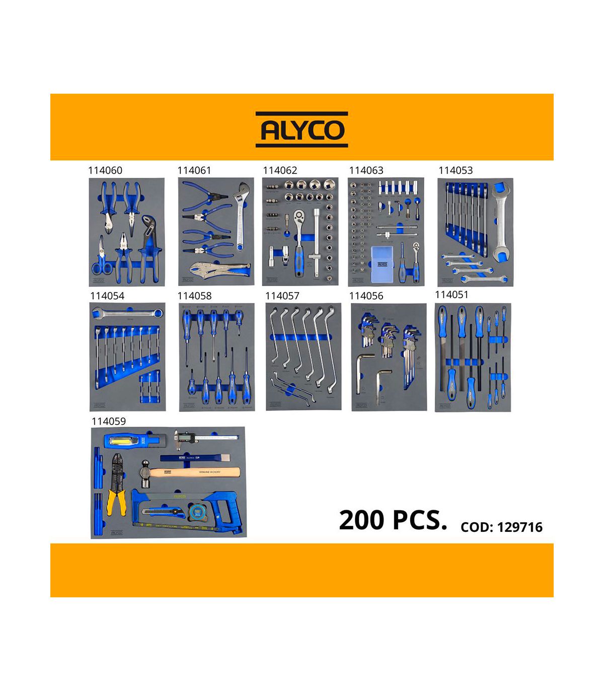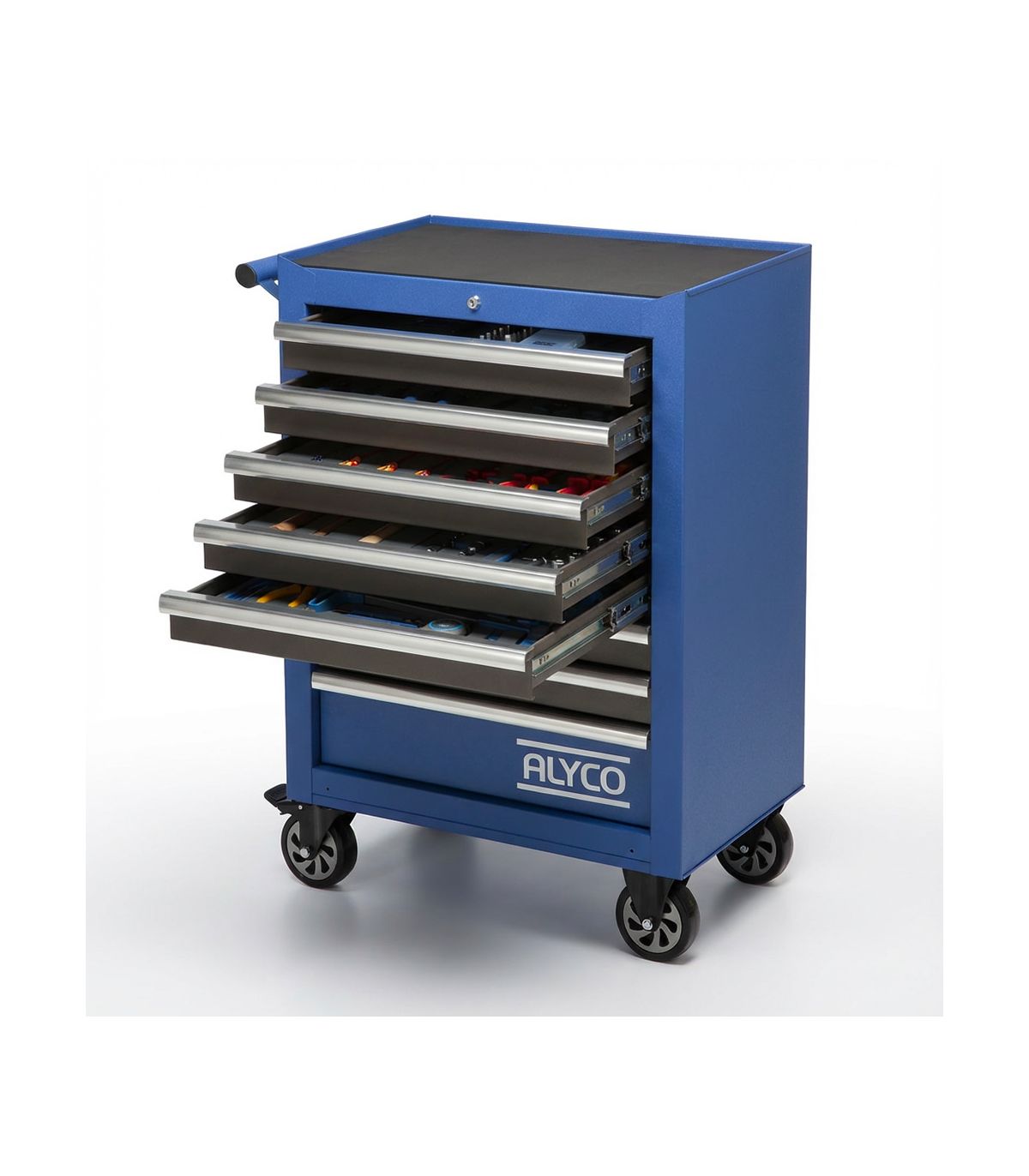 - Assortiment d'Outils Inclus : Livré avec un set complet Alyco (clés, douilles, tournevis, pinces, marteaux) organisé sous modules dédiés.