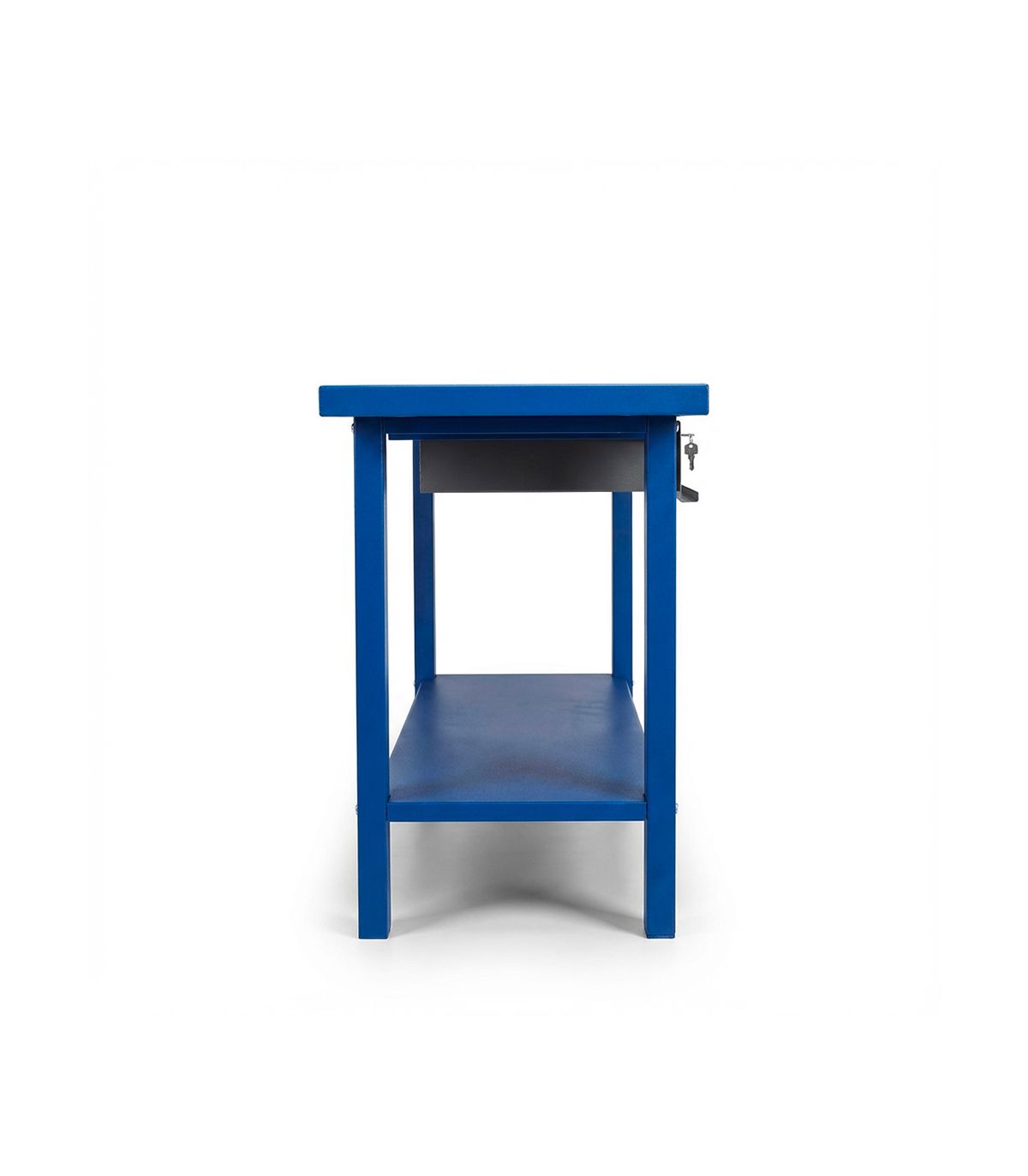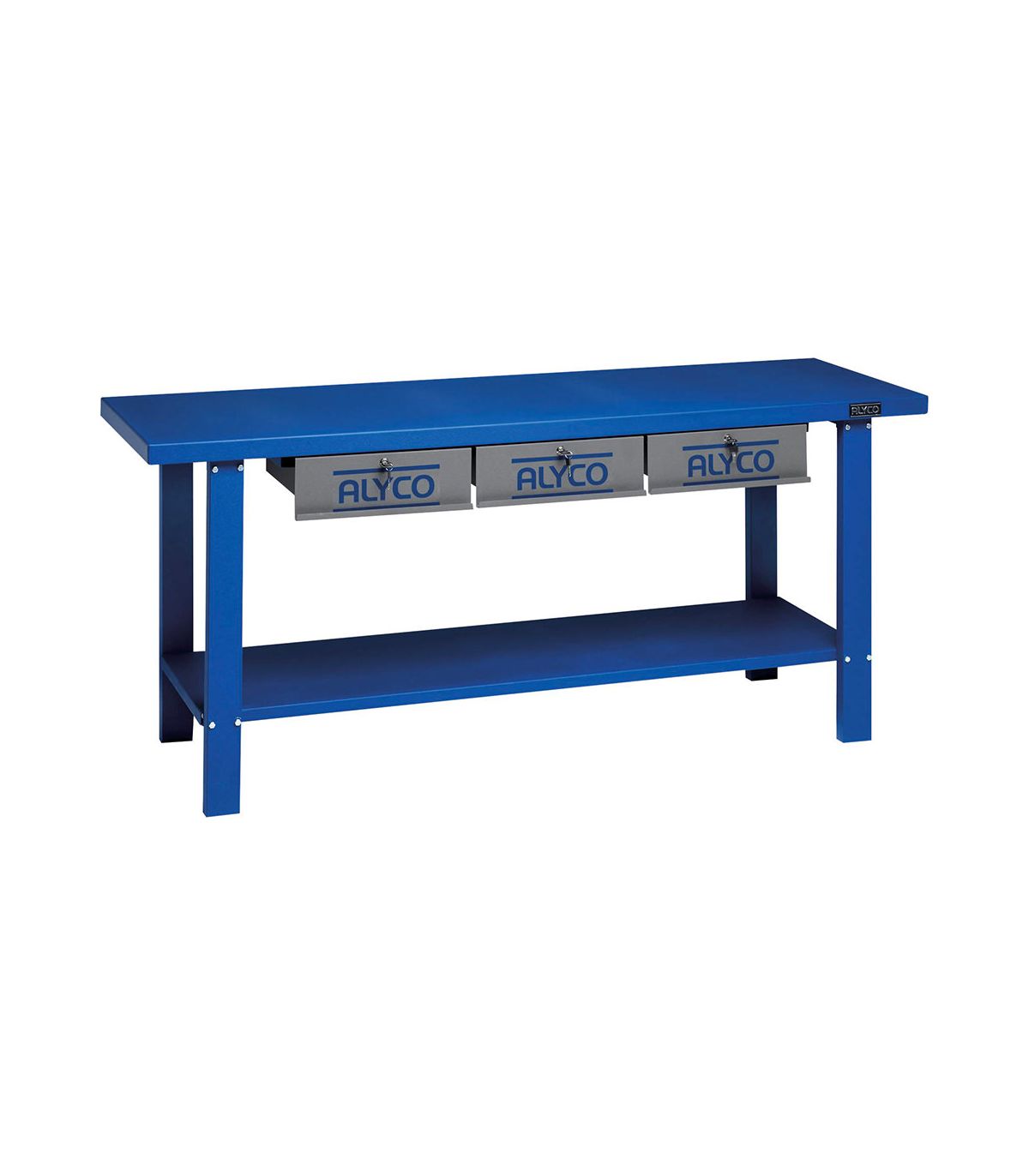 La supériorité technique de la référence 192677 réside dans son châssis surdimensionné. Alyco a conçu une structure tubulaire renforcée capable de supporter des charges colossales sans fléchir, garantissant une planéité parfaite du plan de travail sur toute sa longueur. Les trois tiroirs suspendus offrent une solution de stockage stratégique, permettant de classer vos outils par famille (serrage, mesure, frappe). Montés sur glissières à billes de haute qualité, ils s'ouvrent avec une fluidité remarquable, offrant un accès immédiat à l'outillage nécessaire sans quitter le poste de travail.