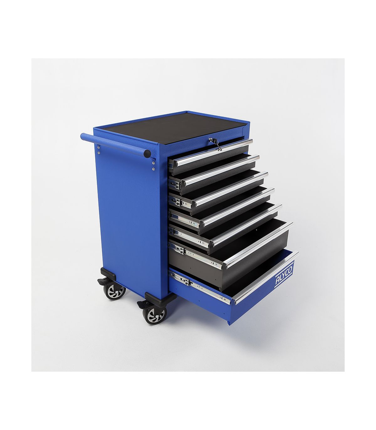 La supériorité technique de la référence 192710 repose sur son châssis en tôle d'acier de forte épaisseur, rigidifié pour supporter des charges d'outillage massives sans déformation. Les 7 tiroirs sont montés sur des glissières télescopiques à roulements à billes de haute qualité, garantissant une ouverture fluide sur des milliers de cycles. L'extraction totale permet d'accéder sans effort aux outils situés au fond des tiroirs, optimisant ainsi chaque centimètre cube de stockage. Chaque tiroir est compatible avec les modules d'organisation standards, facilitant la transition vers un atelier rangé et efficace.