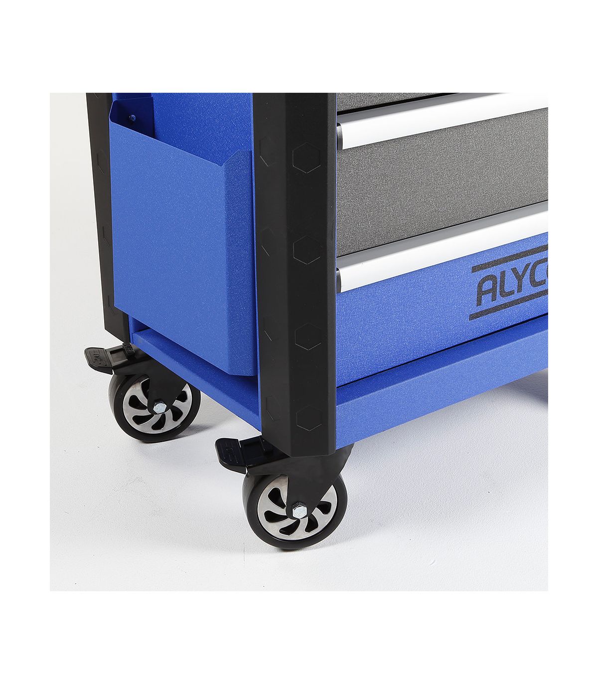 Le contenant est à la hauteur du contenu. La servante renforcée dispose d'un châssis en tôle d'acier de forte épaisseur, rigidifiée pour supporter des charges colossales sans fléchir. Ses 7 tiroirs glissent sur des roulements à billes de précision, offrant une fluidité qui facilite le travail quotidien. Les roues haute charge et la poignée ergonomique permettent de déplacer cet atelier complet avec une facilité déconcertante, même sur des sols industriels exigeants. Le verrouillage centralisé apporte la sécurité nécessaire dans les environnements collectifs. En choisissant ce pack Alyco, vous investissez dans la durabilité et la productivité de vos opérations techniques.