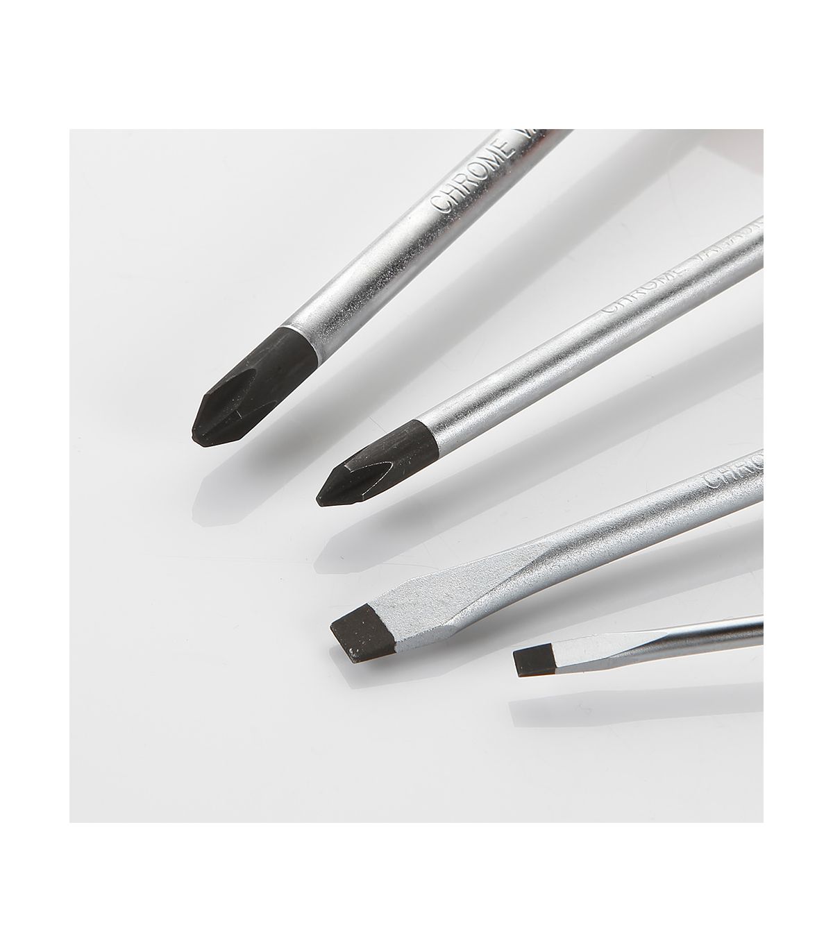 Ce set de 4 pièces est le compagnon idéal des sacoches de transport légères ou des boîtes à gants. Il comprend les dimensions de base en empreinte plate et en Phillips, les deux standards universels du bricolage et de l'industrie. Que vous deviez remonter une carrosserie, ajuster une installation de bureau ou réparer un petit appareil mécanique, vous disposez du levier nécessaire. La finition polie de la lame facilite l'entretien et renforce la protection contre l'oxydation, un atout précieux si les outils sont stockés dans des environnements variables.