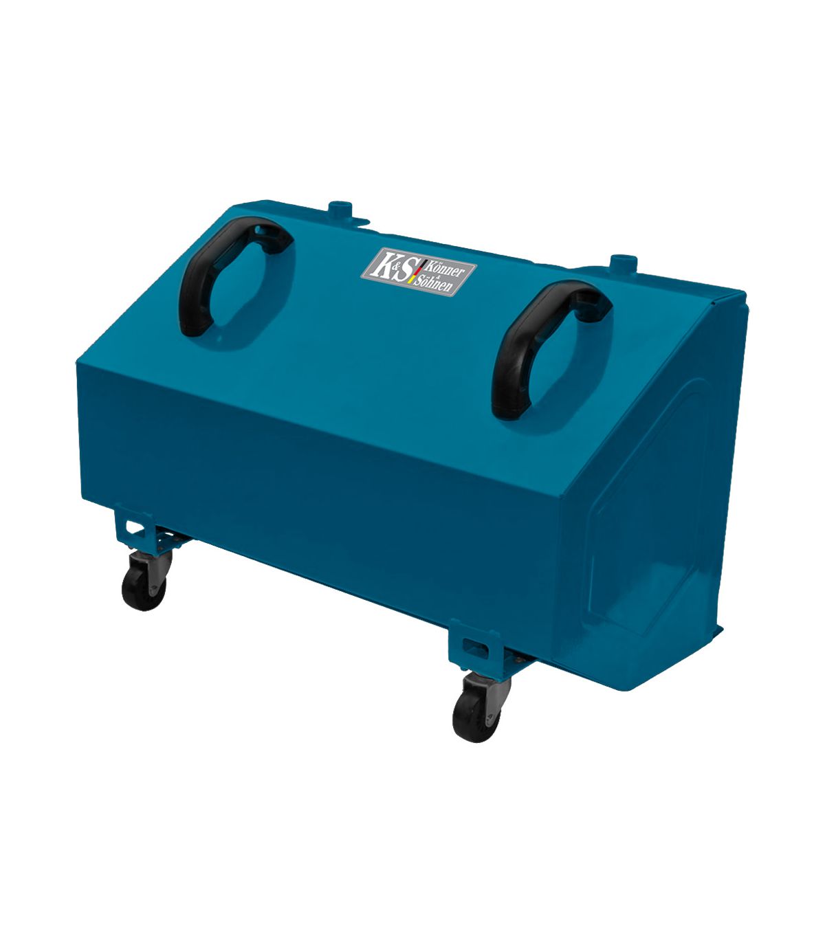 Ajouter un bac devant une machine pourrait nuire à sa maniabilité. Könner & Söhnen a résolu ce problème en équipant le KS MFM-DB 60 de **roues pivotantes à 360 degrés**. Ces roulettes permettent au bac de suivre fidèlement chaque virage et chaque manœuvre de la machine multifonction, sans effort supplémentaire pour l'utilisateur. La hauteur du bac est étudiée pour s'ajuster parfaitement à la brosse, assurant qu'aucun débris ne s'échappe par-dessous.