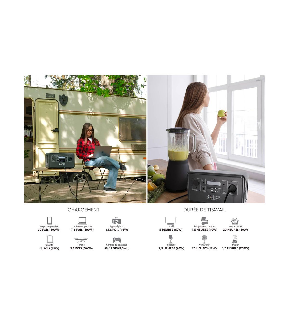 Vous pouvez alimenter des ordinateurs portables, drones, petites glacières, lampes et recharger tous vos appareils mobiles.