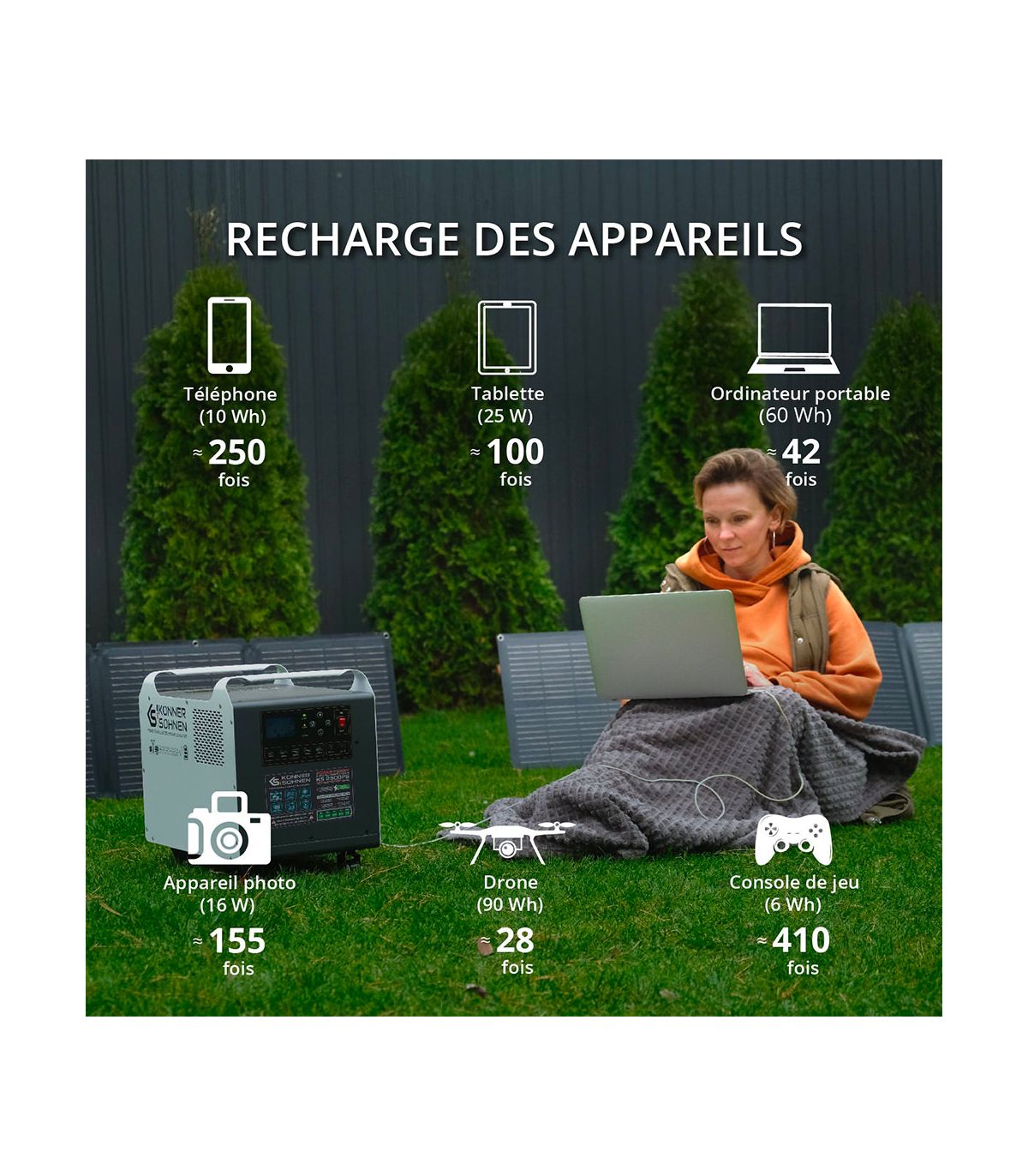 - Générateur Solaire Réel : Vous pouvez consommer de l'énergie tout en rechargeant à haute vitesse, rendant possible une autonomie 24h/24 tant qu'il y a du soleil.