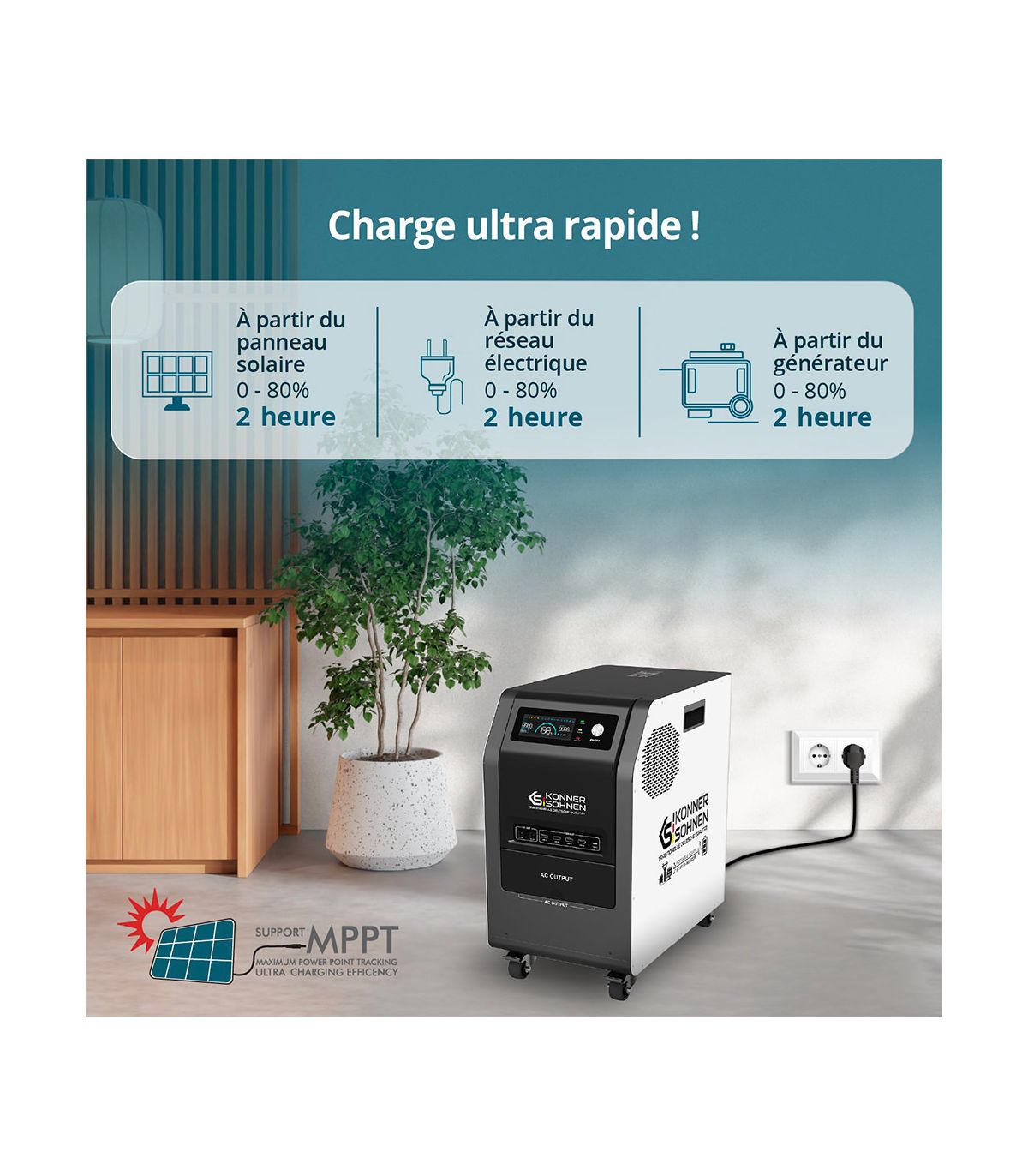 La station d'énergie hybride KS 3000PS-NEW de Könner & Söhnen marque un tournant dans le domaine de l'autonomie énergétique résidentielle et professionnelle. Ce n'est plus simplement une batterie portable, c'est un véritable "Energy Hub" (Hub Énergétique) 3-en-1 intelligent. Elle intègre dans un boîtier unique et compact les trois composants essentiels d'une installation solaire classique : un onduleur puissant, un parc de batteries haute capacité et un régulateur de charge solaire MPPT. Fini les installations complexes avec des câbles partout et des composants disparates : la KS 3000PS est une solution "Plug & Play" prête à révolutionner votre indépendance vis-à-vis du réseau électrique.