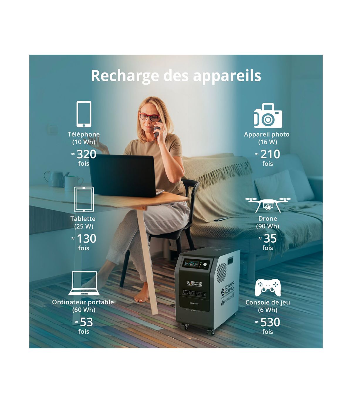- Capacité Élevée 3200 Wh : Une réserve d'énergie conséquente pour alimenter une maison ou un atelier isolé.