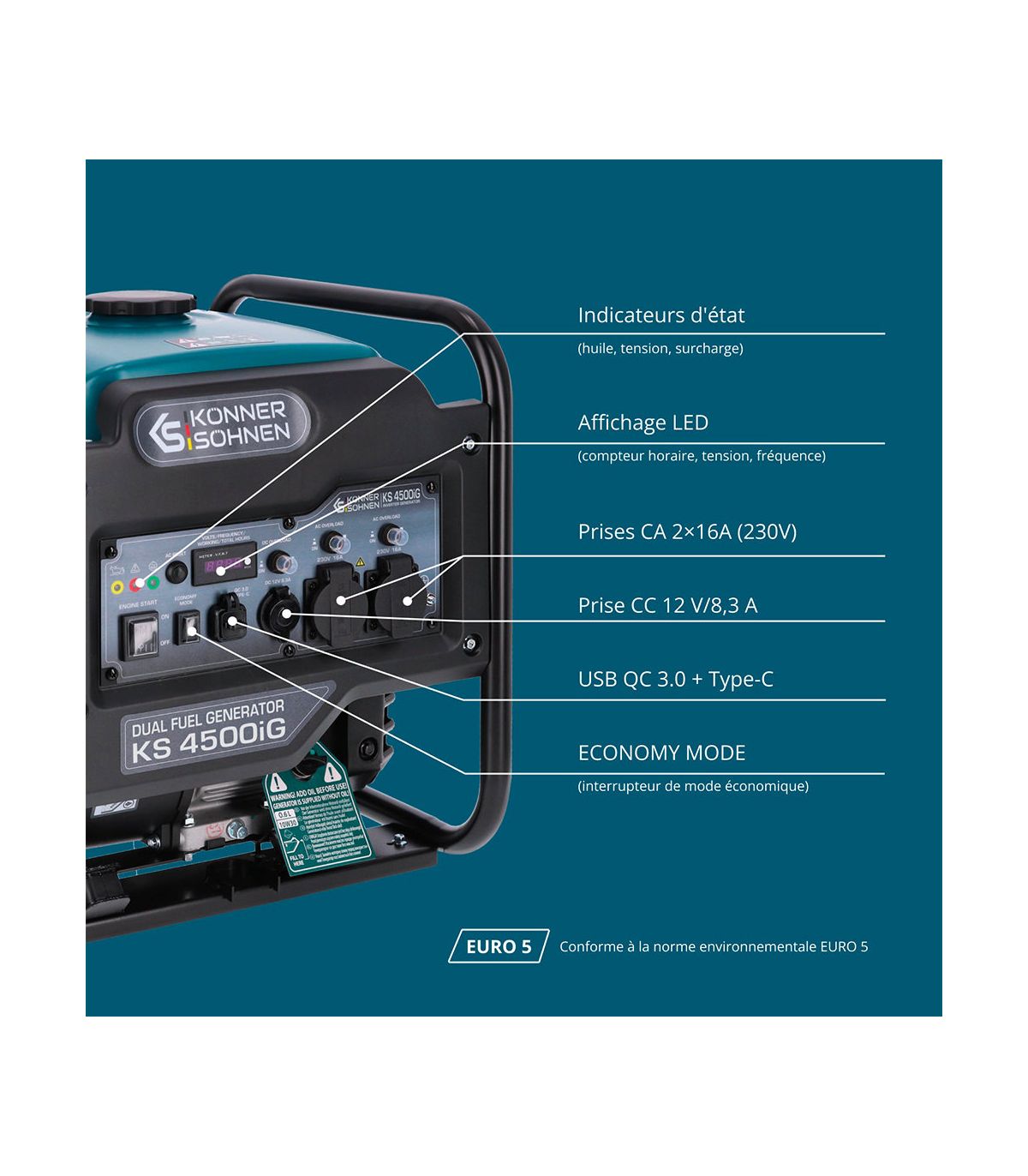 Groupe électrogène Inverter Bi-Carburant Könner & Söhnen KS 4500iG