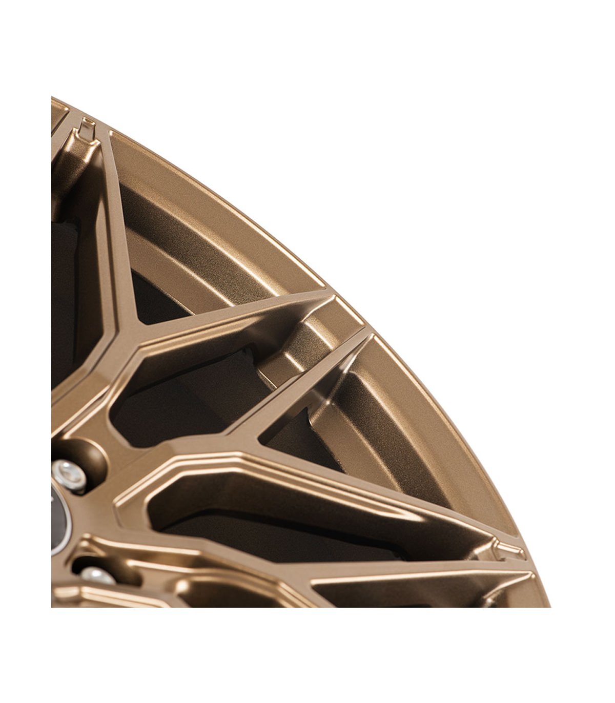 La finition Bronze mat de ce design, ainsi que sa structure Nid d'abeille, apportent à la fois un attrait esthétique et une performance durable. Ces roues ont été testées pour supporter des véhicules avec une puissance minimale de 75 kW.