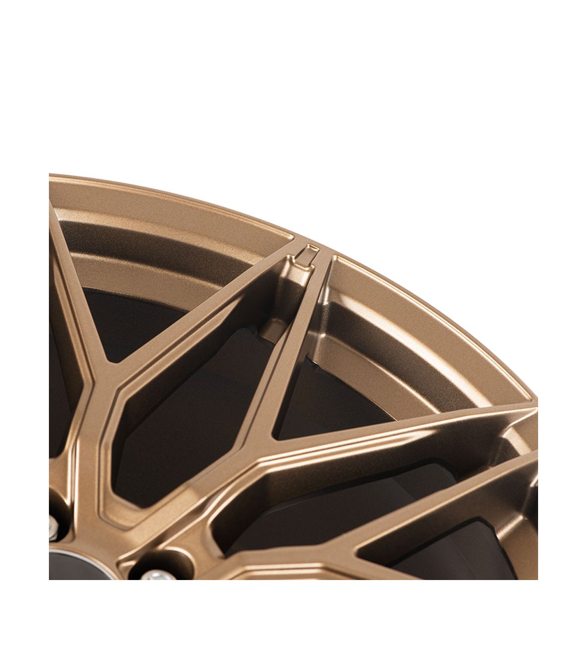 La finition Bronze mat de ce design, ainsi que sa structure Nid d'abeille, apportent à la fois un attrait esthétique et une performance durable. Ces roues ont été testées pour supporter des véhicules avec une puissance minimale de 85 kW.