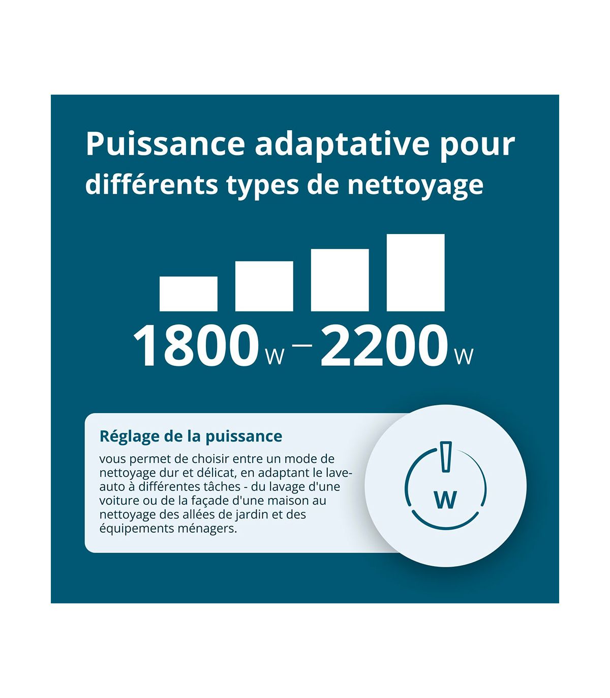 - Pression Maximale 160 Bars : Une puissance de décapage impressionnante pour venir à bout des saletés les plus incruster (boue séchée, tartre, mousses épaisses).