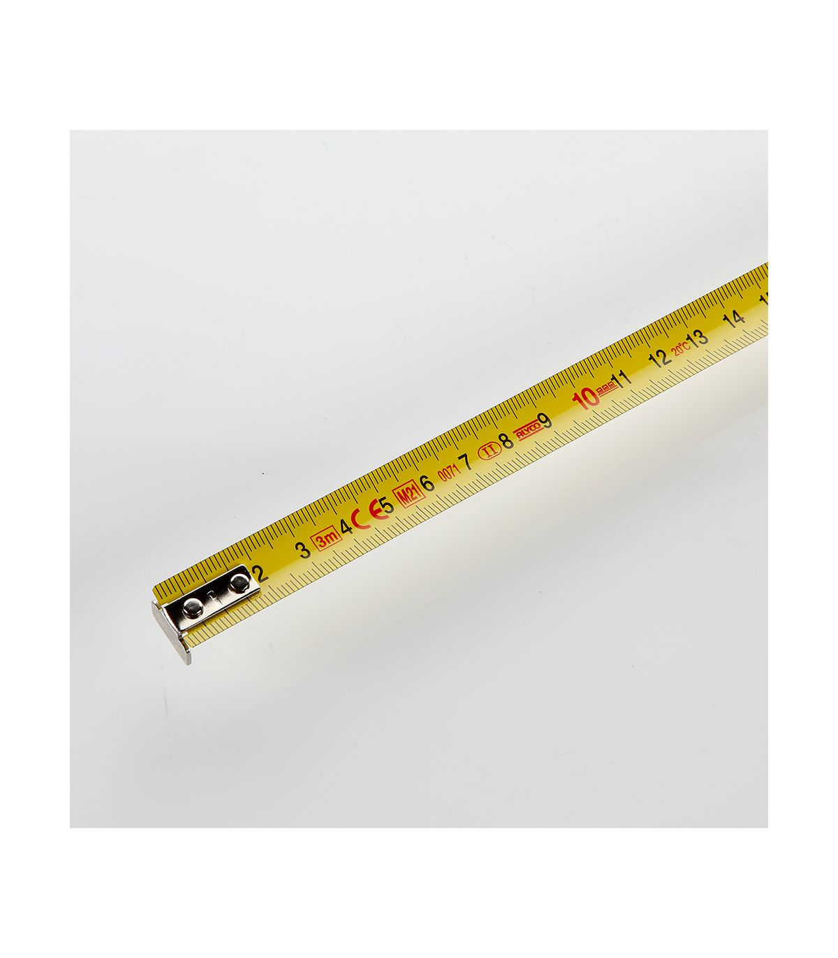 La supériorité technique du flexomètre Alyco 170832 réside dans sa certification en Classe II, garantissant une précision conforme aux normes européennes. Le ruban métallique de 19 mm de large est un atout stratégique : cette largeur accrue offre une excellente tenue (stand-out), permettant au ruban de rester rigide sur une distance importante sans se plier. Cette caractéristique est fondamentale pour les artisans travaillant seuls, car elle facilite les prises de mesures en hauteur ou sur de grandes surfaces horizontales. Le ruban est revêtu d'un vernis protecteur de haute densité qui préserve les graduations contre l'usure, l'abrasion et l'humidité, assurant une lisibilité parfaite sur le long terme.
